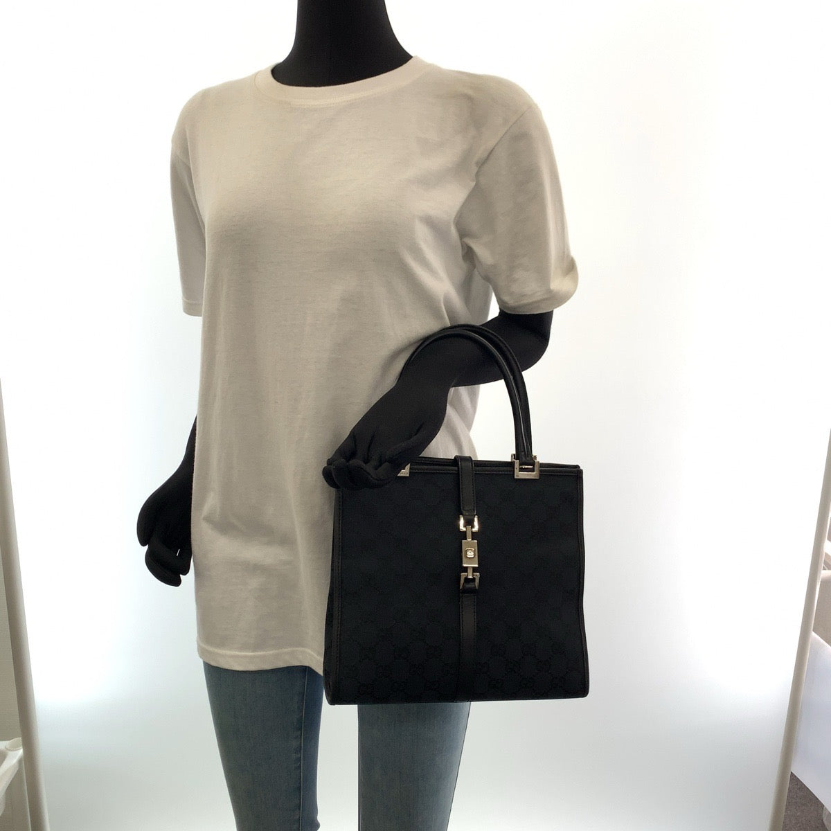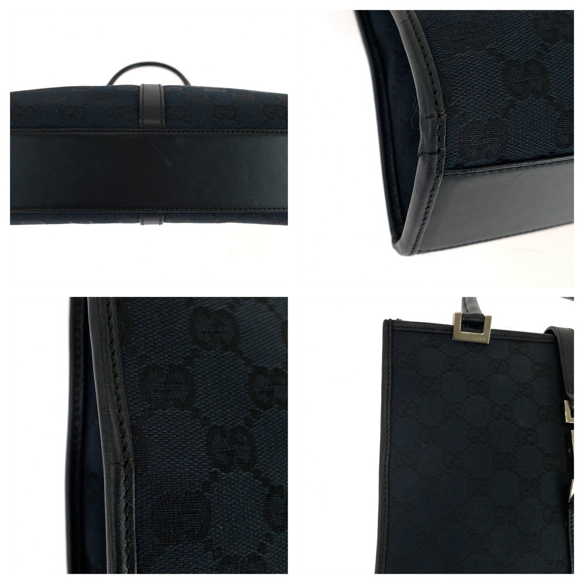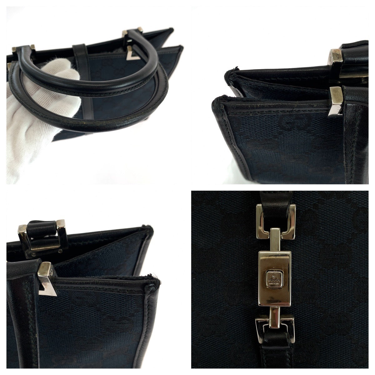 GUCCI Tote Bag 002 1065 GG canvas Black SilverMetal Jackie