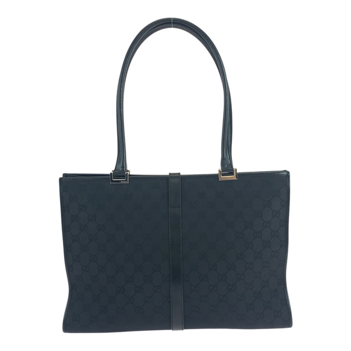 GUCCI Tote Bag 002 1074 GG canvas Black SilverMetal Jackie