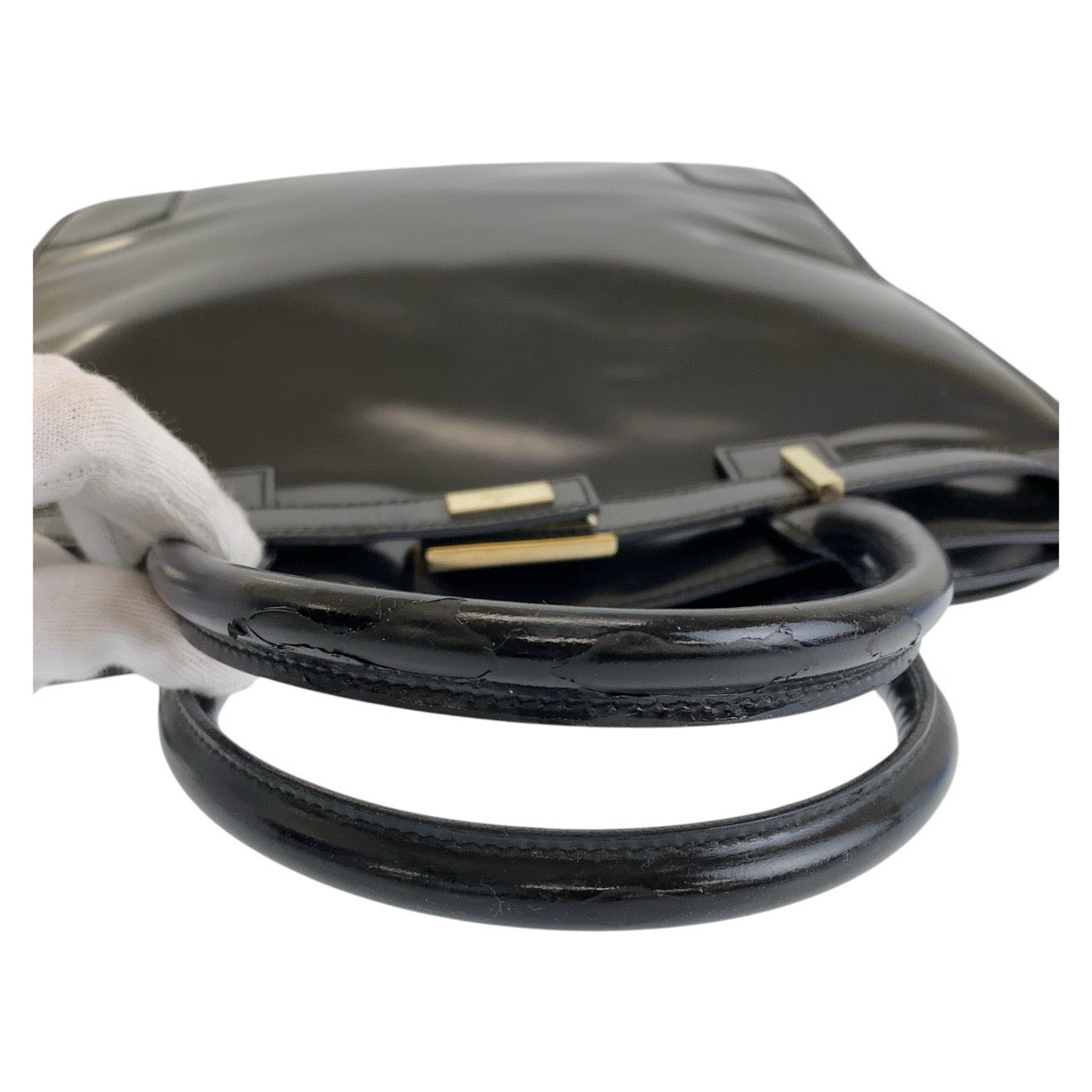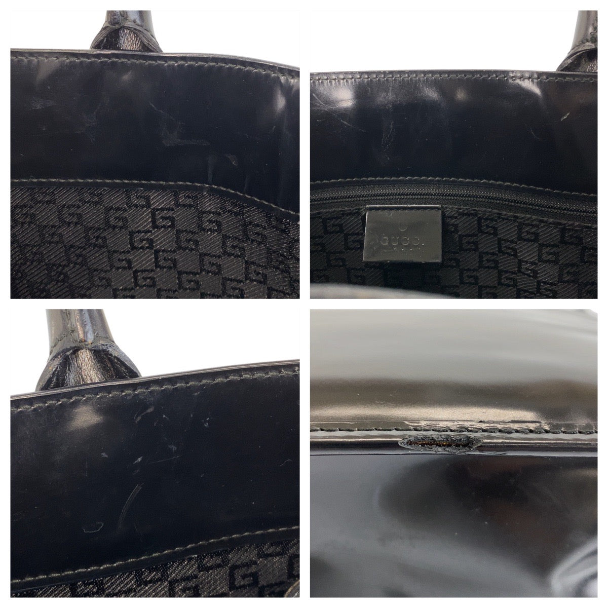 GUCCI Tote Bag 002 1091 leather Black Gold Metal Tote Bag Women Used Authentic