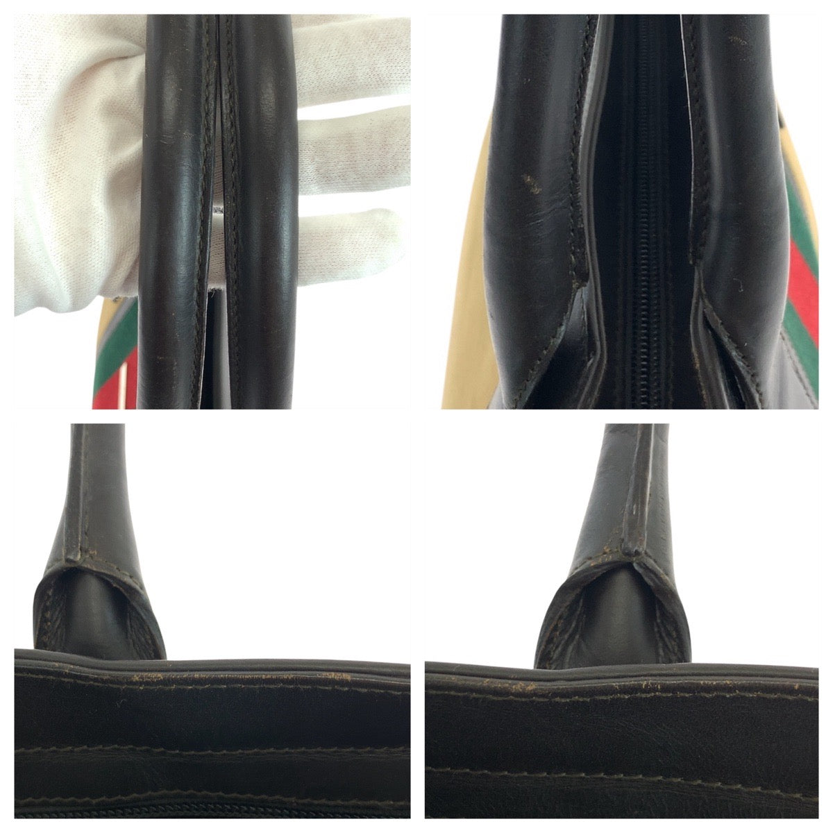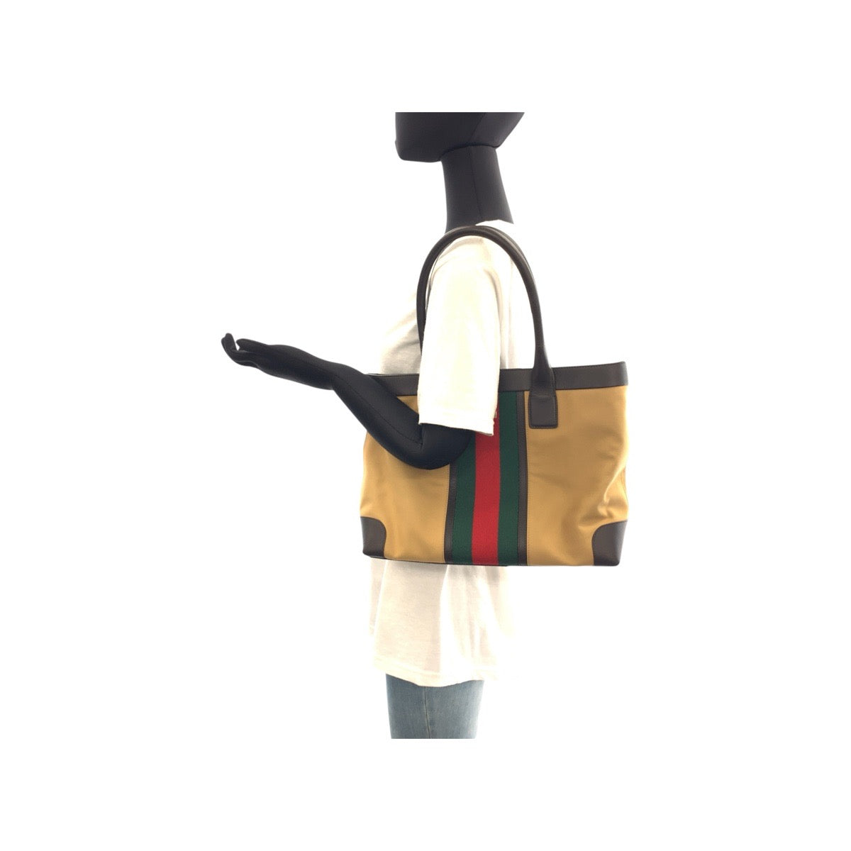 GUCCI Tote Bag 002.1119 Canvas, Leather Beige Camel Brown Tote Bag Shoulder Bag Sherry line Mayfair Women Used Authentic