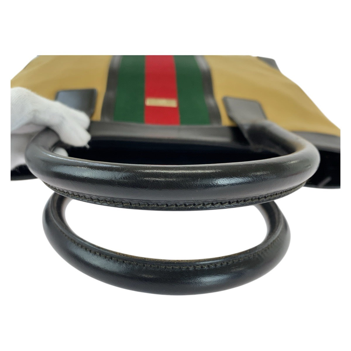 GUCCI Tote Bag 002 1119 Canvas, Leather beige Tote Bag Shoulder Bag Sherry line Women Used Authentic