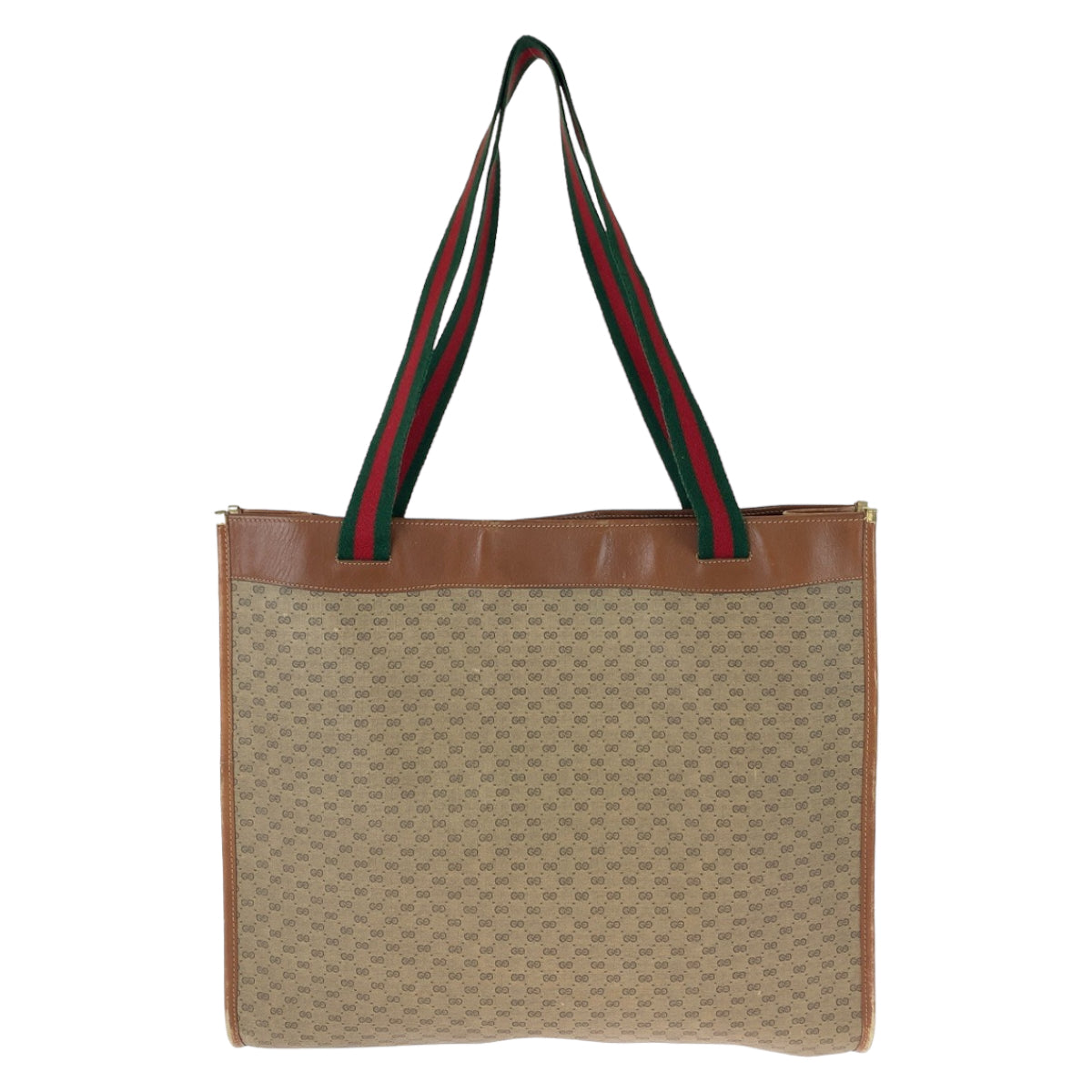GUCCI Tote Bag 002 39 0044 GG Supreme canvas, leather Brown Gold Metal Tote Bag Shoulder Bag Unisex Old Gucci Sherry Line Micro GG Women Used Authentic