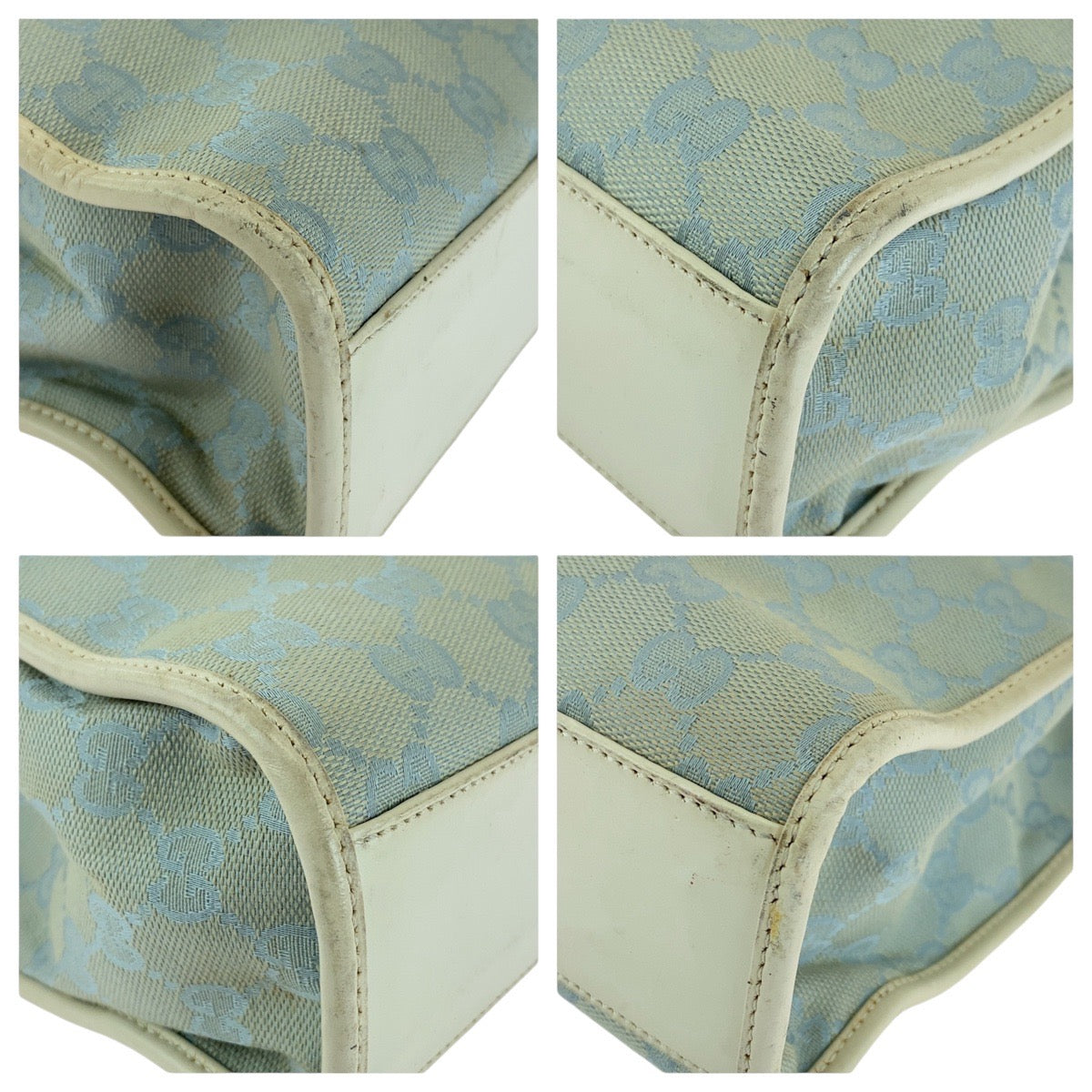 GUCCI Tote Bag 002 5065 GG canvas, leather Light blue Handbag Jackie Women Used Authentic