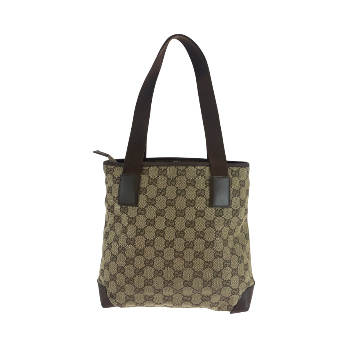 GUCCI Tote Bag 019 0402 GG canvas Brown Beige SilverMetal Tote Bag Shoulder Bag Women Used Authentic