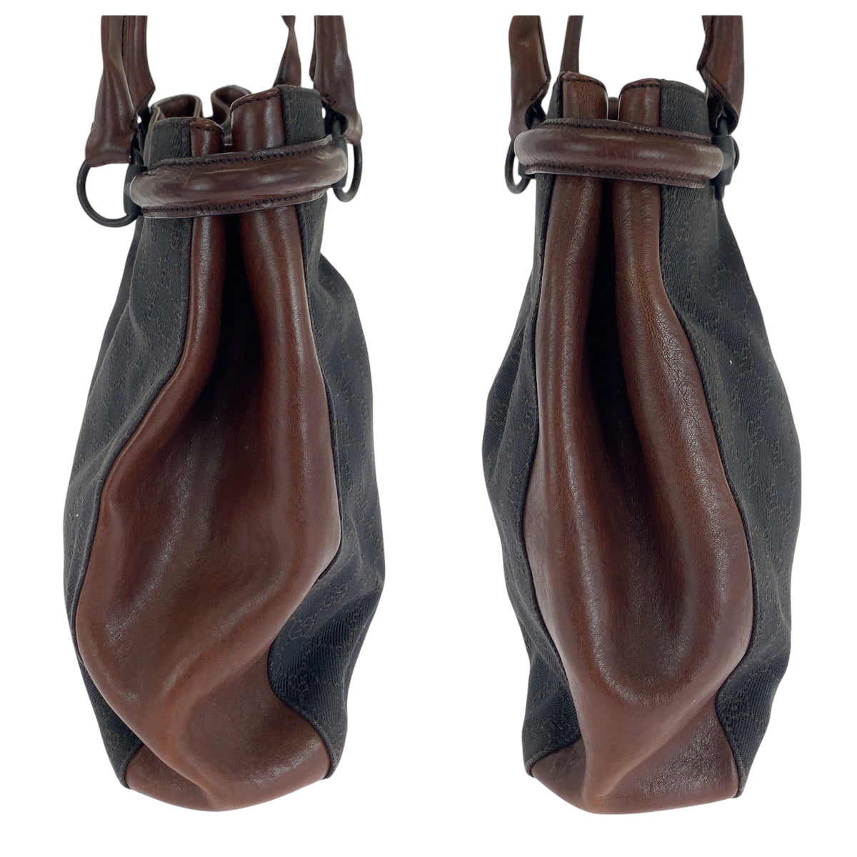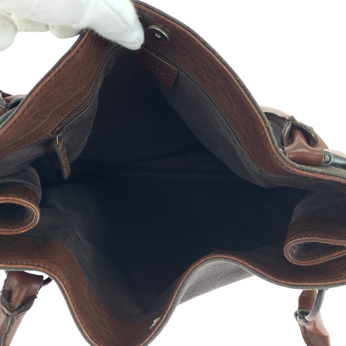 GUCCI Tote Bag 101346 GG canvas Brown Black Metal Tote Bag Shoulder Bag Women Used Authentic