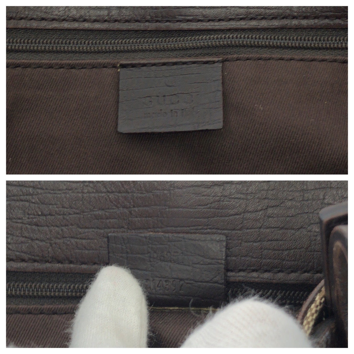 GUCCI Tote Bag 106251 GG canvas Beige Brown Gold Metal Tote Bag handbag Women Used Authentic