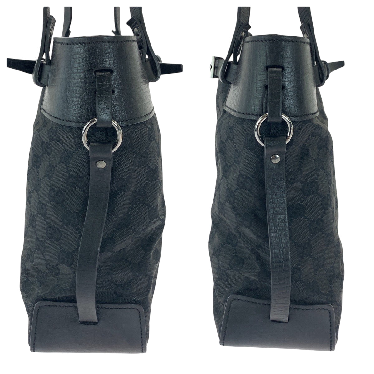 GUCCI Tote Bag 107757 GG canvas Black SilverMetal Tote Bag Shoulder Bag Women Used Authentic