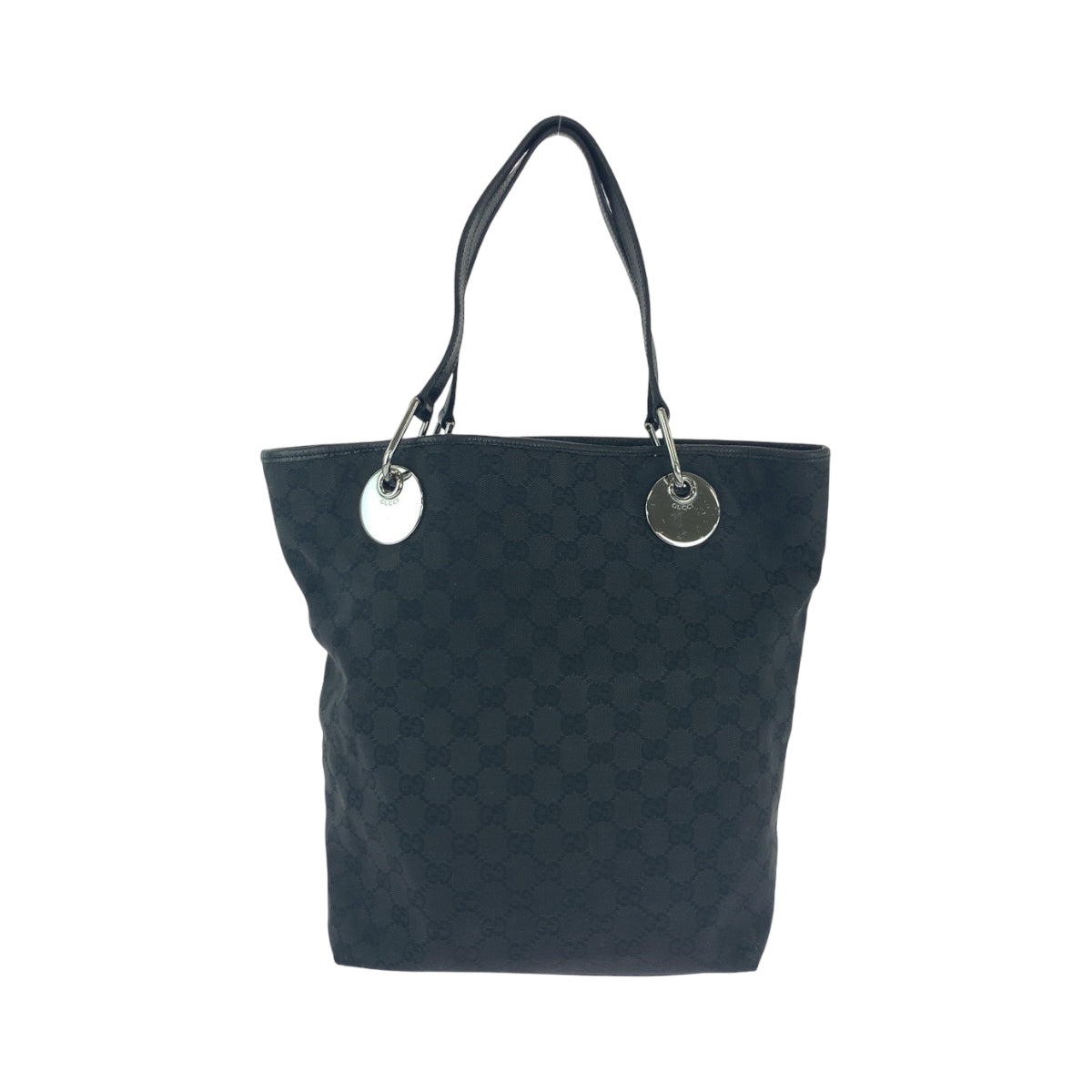 GUCCI Tote Bag 10836 GG canvas Black SilverMetal Tote Bag Shoulder Bag Women Used Authentic