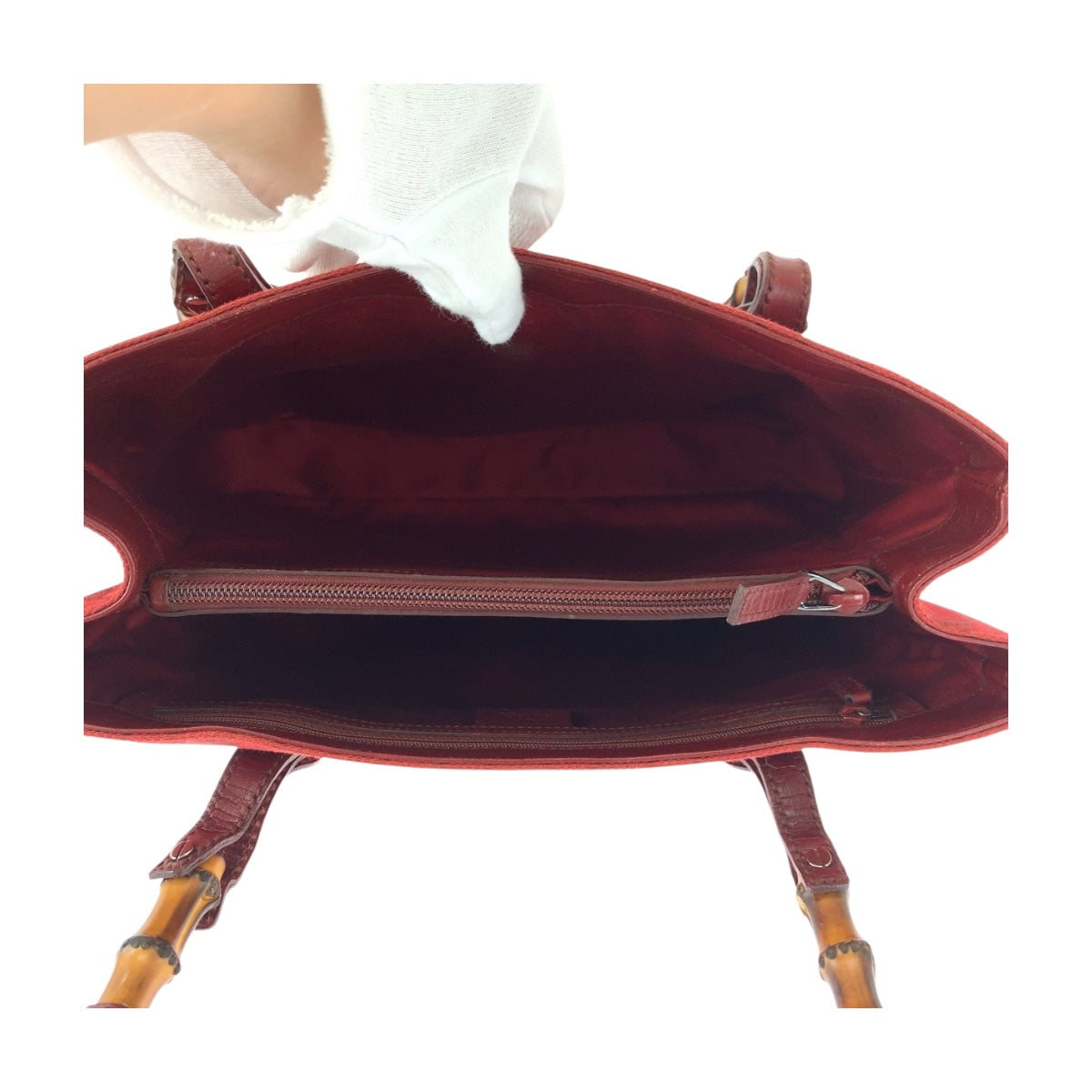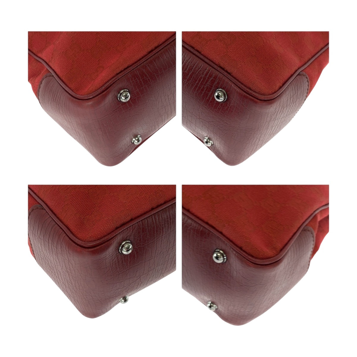 GUCCI Tote Bag 112526 canvas Red Brown SilverMetal Bamboo