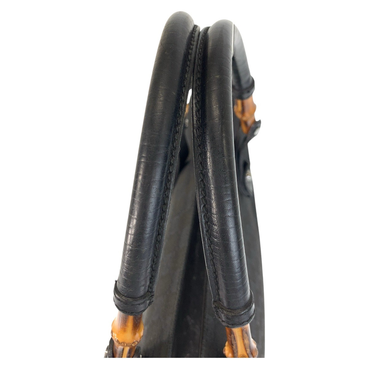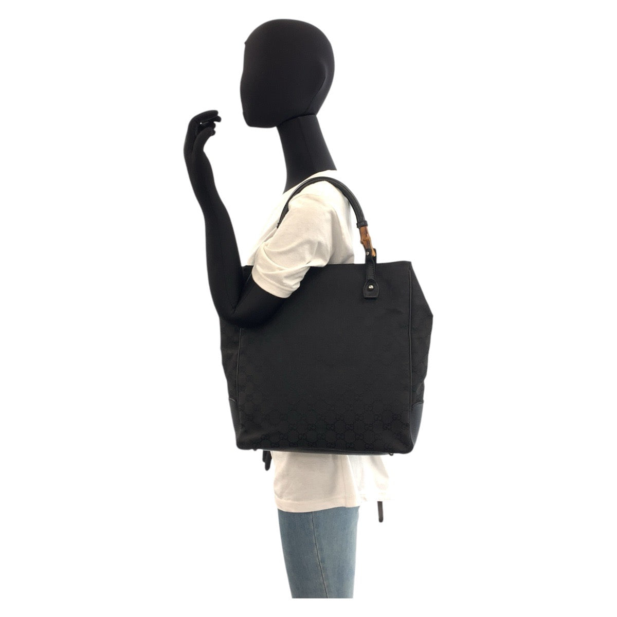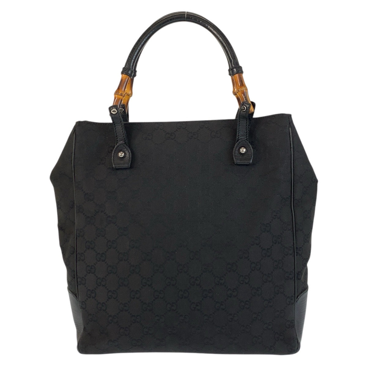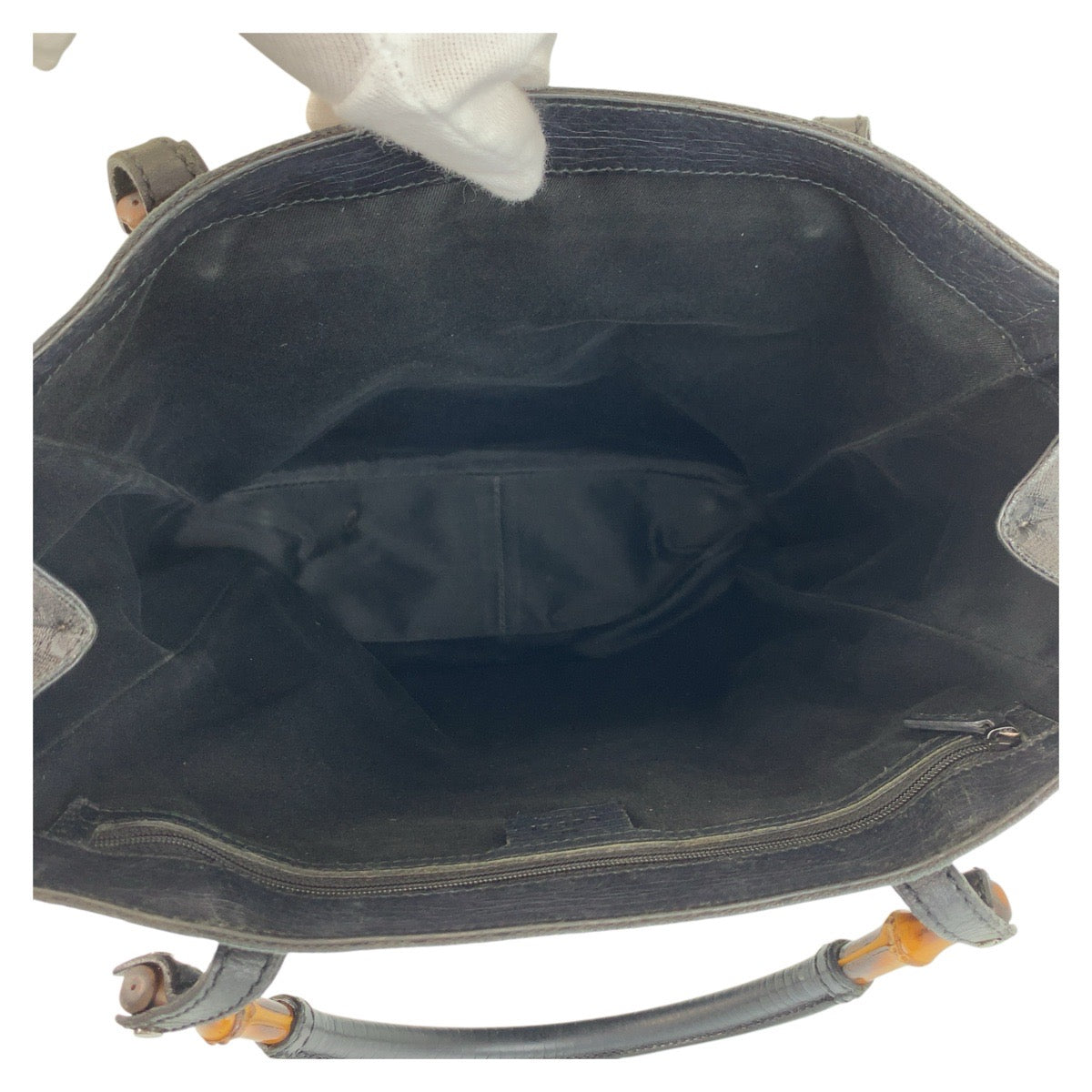 GUCCI Tote Bag 112530 GG canvas, leather Black black Tote Bag Shoulder Bag Bamboo Women Used Authentic