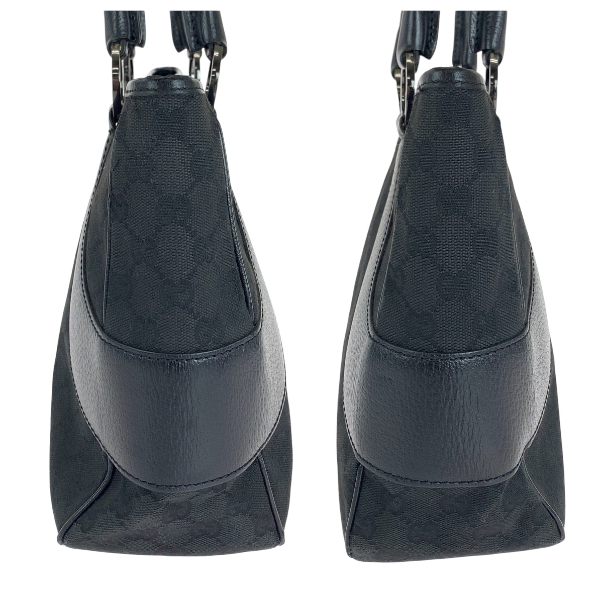 GUCCI Tote Bag 113011 GG canvas, leather Black SilverMetal Tote Bag Shoulder Bag Women Used Authentic