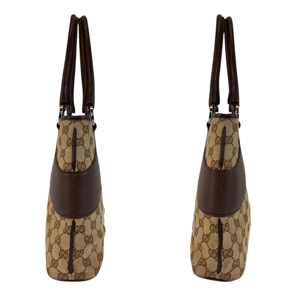GUCCI Tote Bag 113015 GG canvas, leather Beige brown Tote Bag Shoulder Bag Women Used Authentic
