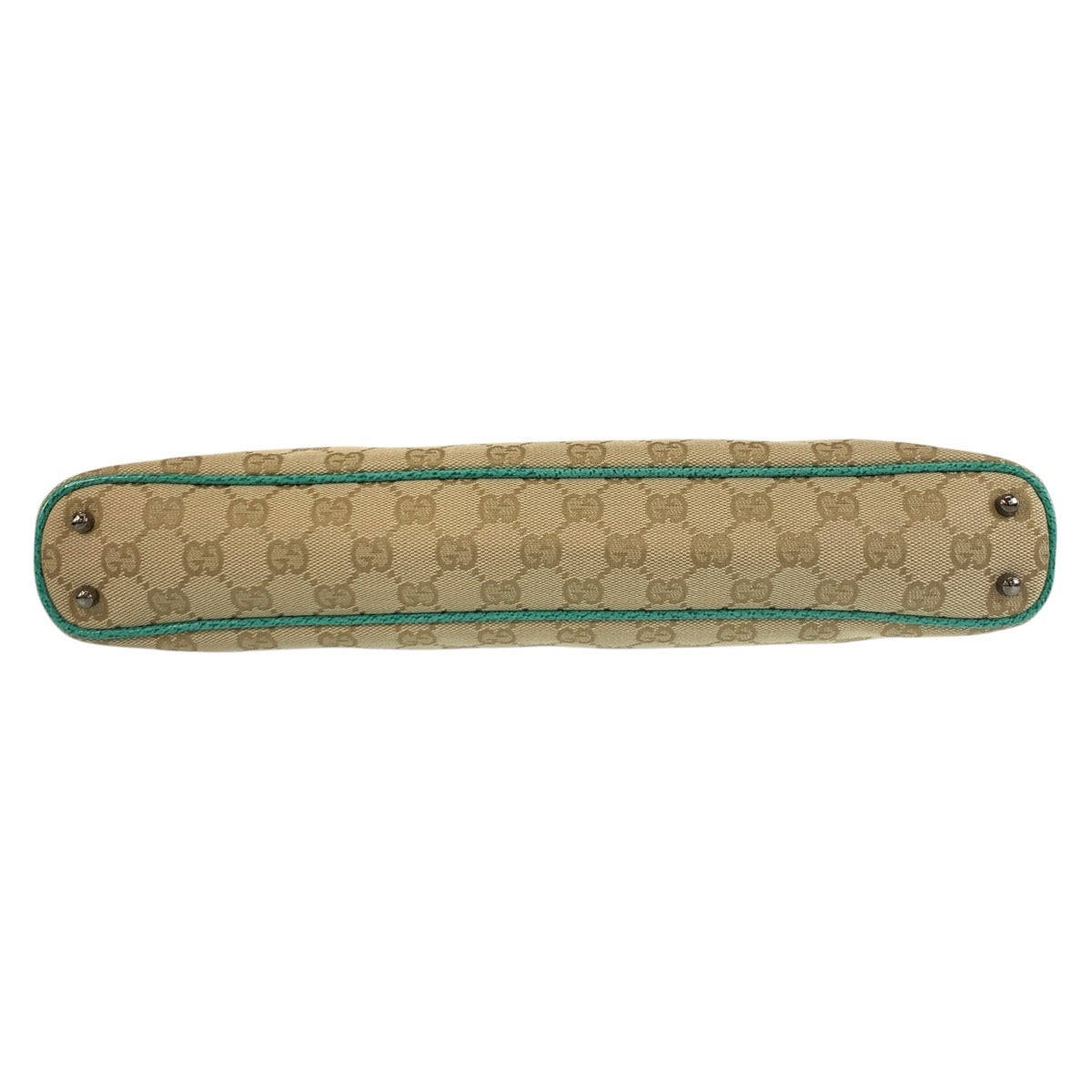 GUCCI Tote Bag 113015 GG canvas, leather Beige Green SilverMetal Tote Bag Shoulder Bag Women Used Authentic