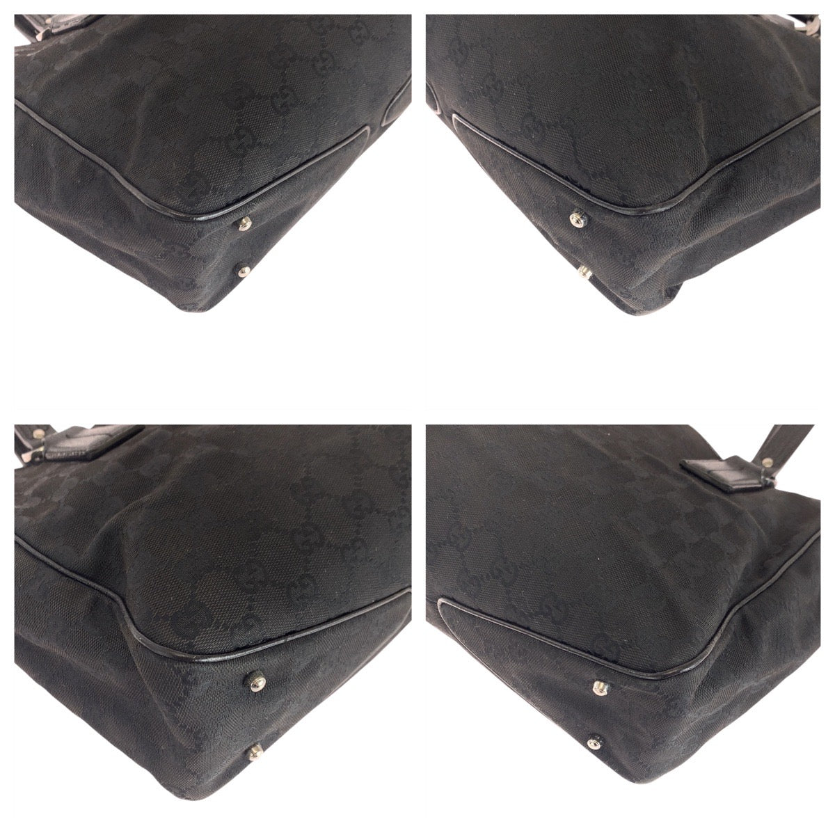 GUCCI Tote Bag 113019 GG canvas, leather Black SilverMetal Tote Bag Shoulder Bag Women Used Authentic