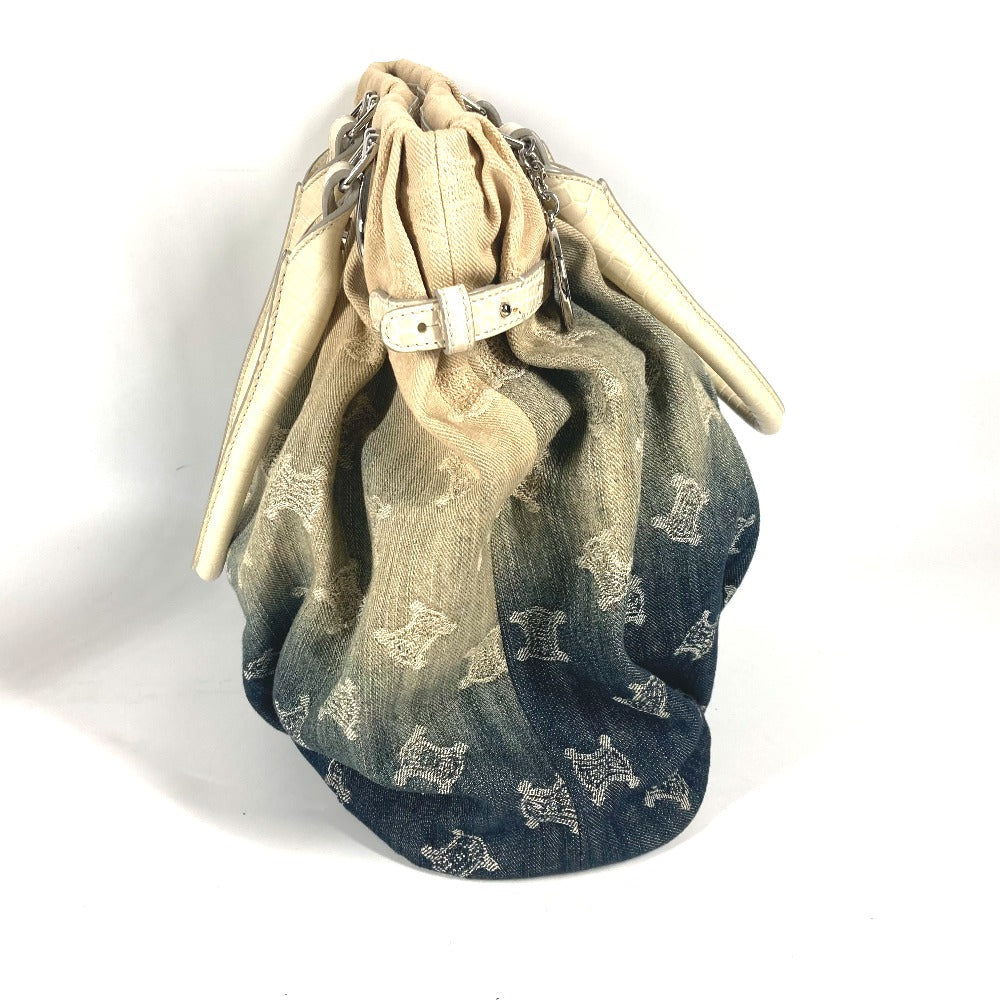CELINE Tote Bag Leather / canvas white Macadam logo denim gradation