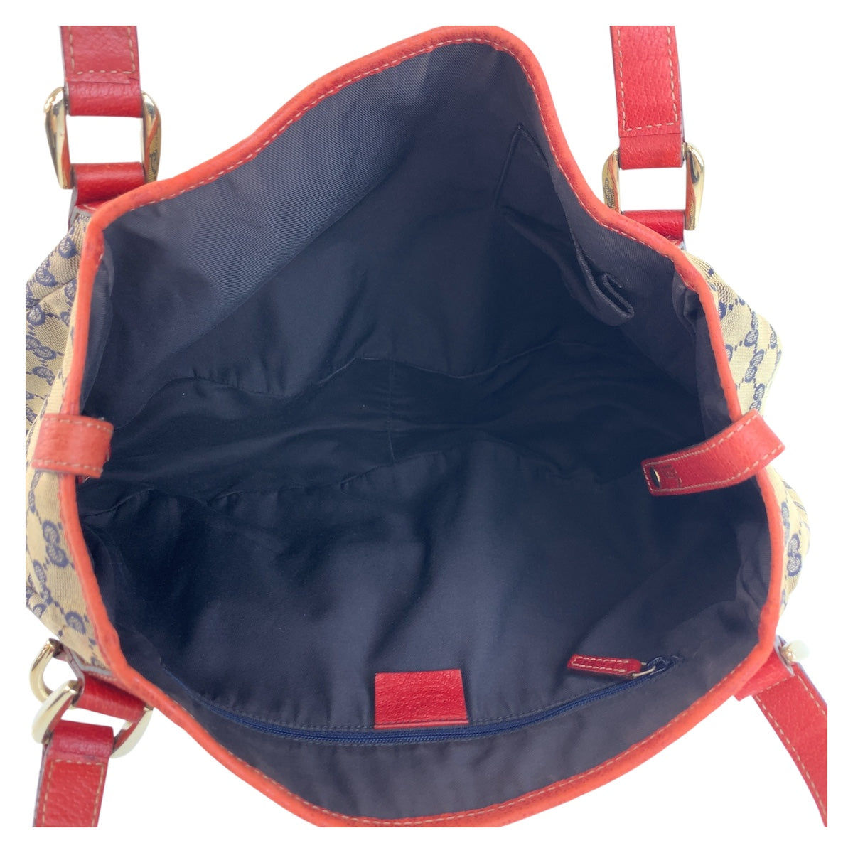 GUCCI Tote Bag 130736 GG canvas Gray Red Gold Metal Abbey