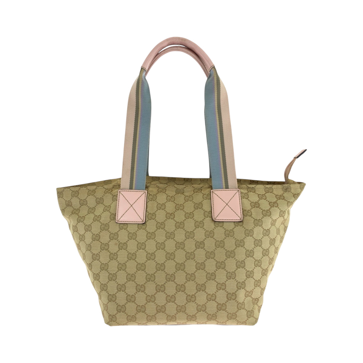 GUCCI Tote Bag 131230 GG canvas Beige Pink Blue Gold Metal Tote Bag Shoulder Bag Women Used Authentic