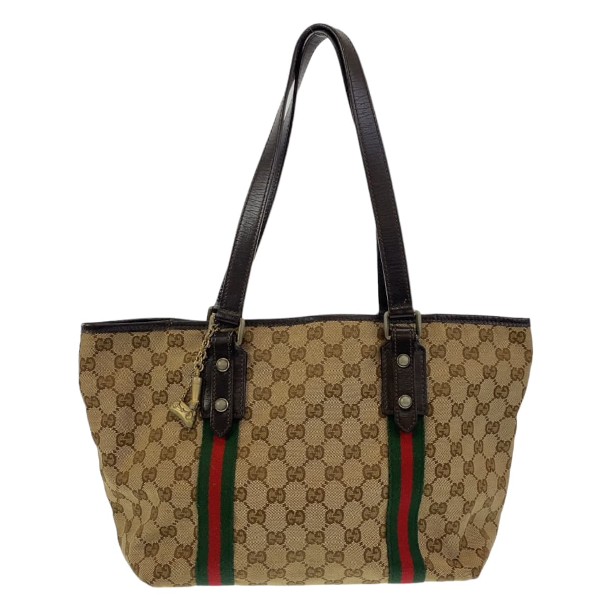 GUCCI Tote Bag 137396 GG canvas Beige multicolor Tote Bag Shoulder Bag Sherry line Women Used Authentic