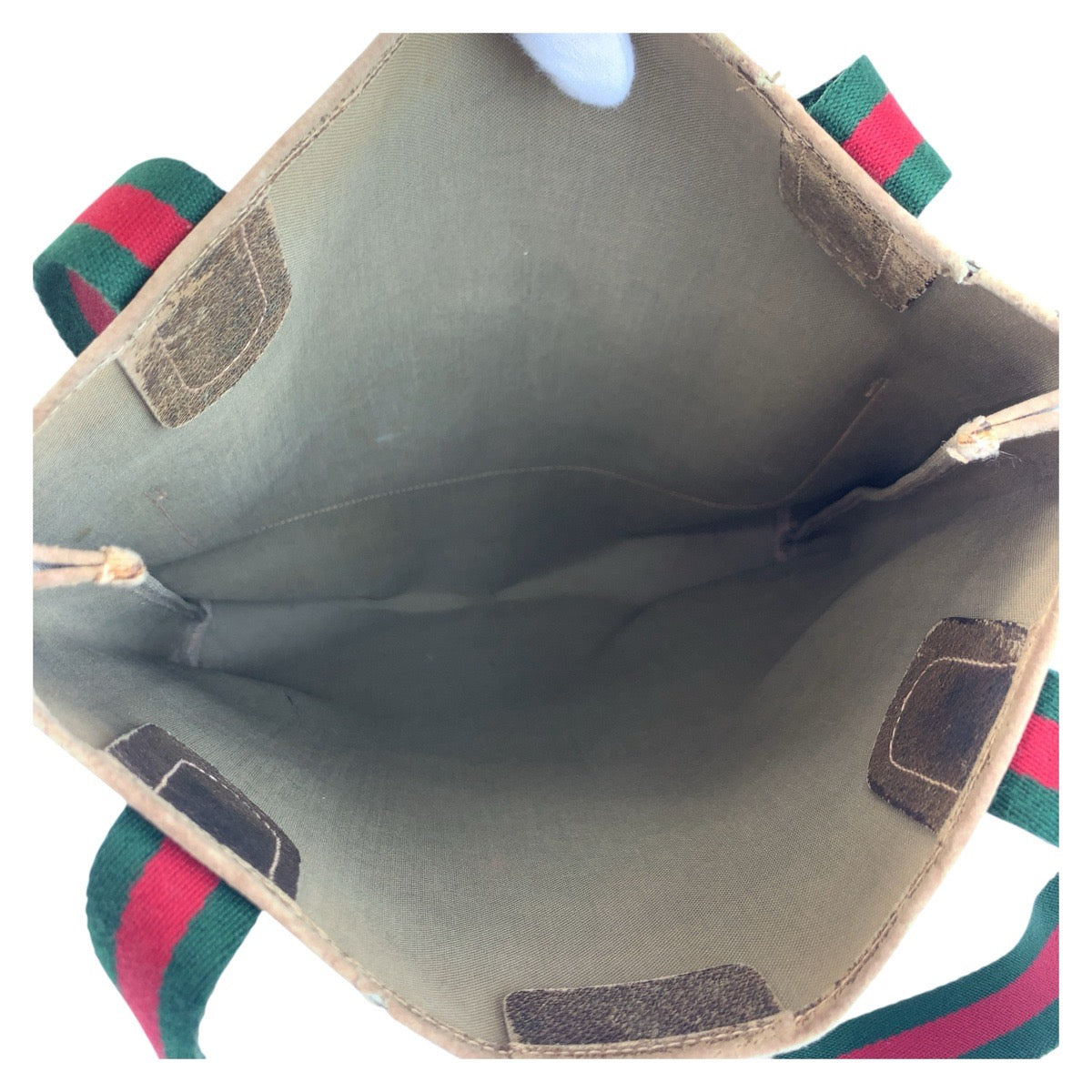 GUCCI Tote Bag 16 002 4487 GG Supreme Canvas Beige Gold Metal Sherry Line Old Gucci