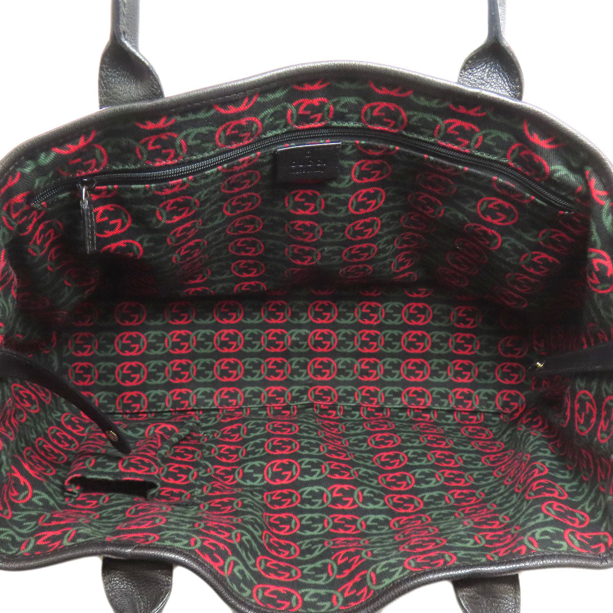 GUCCI Tote Bag 163805 leather black GG Princey Ribbon