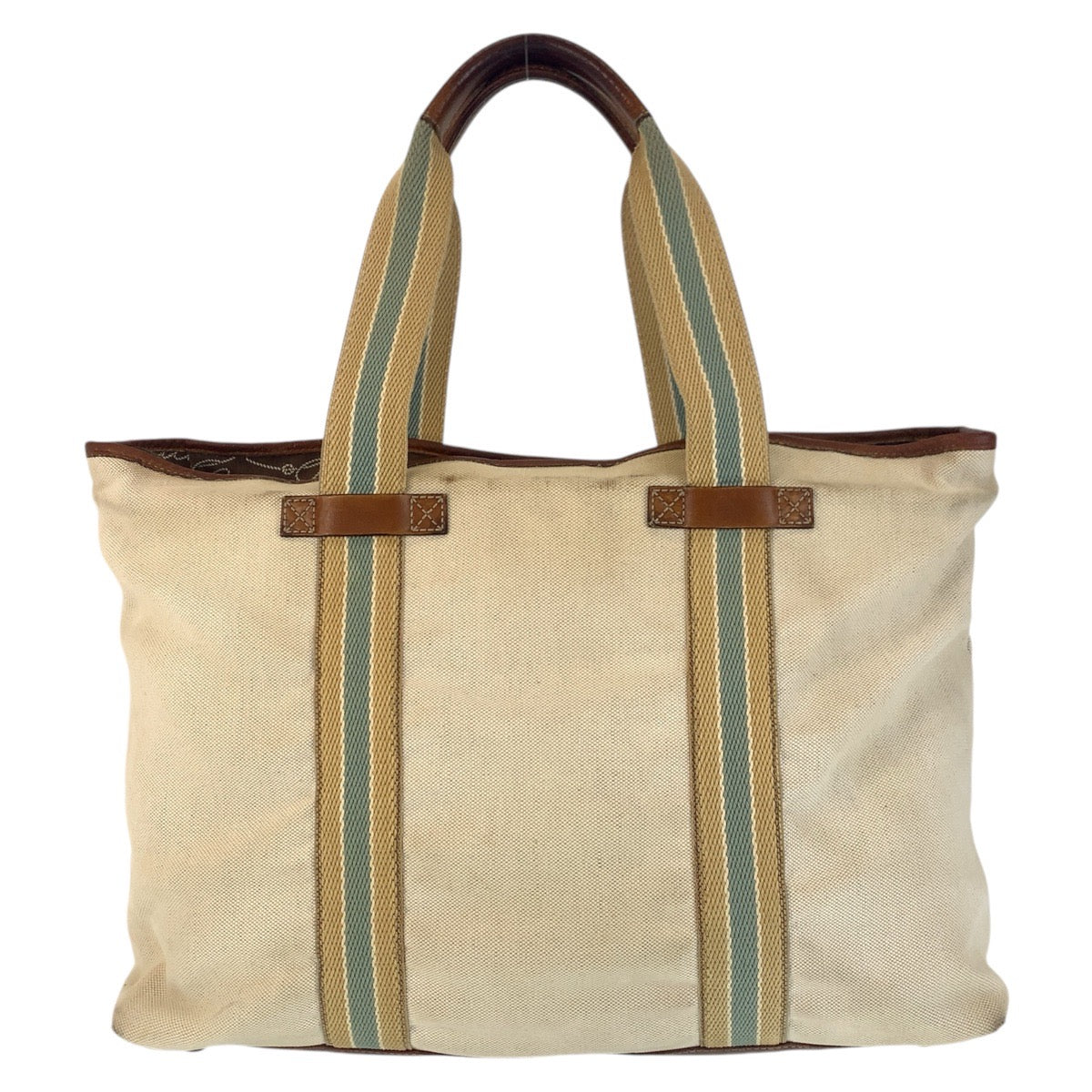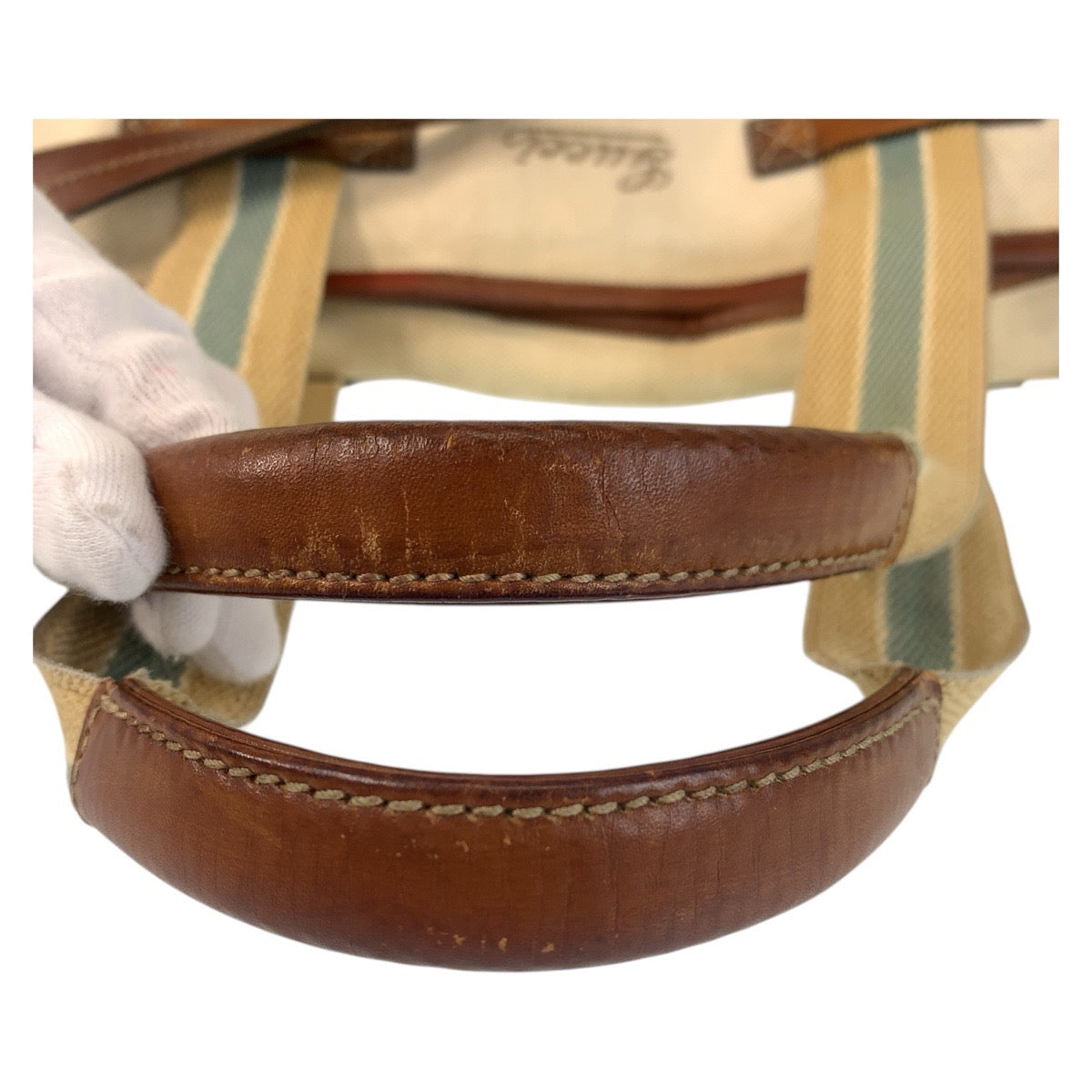 GUCCI Tote Bag 170594 canvas Beige Brown Gold Metal Sherry line