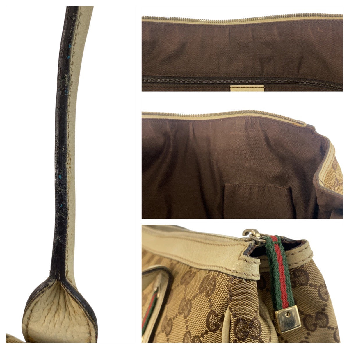 GUCCI Tote Bag 177052 GG canvas Beige Ivory Gold Metal Prince Shelley Line