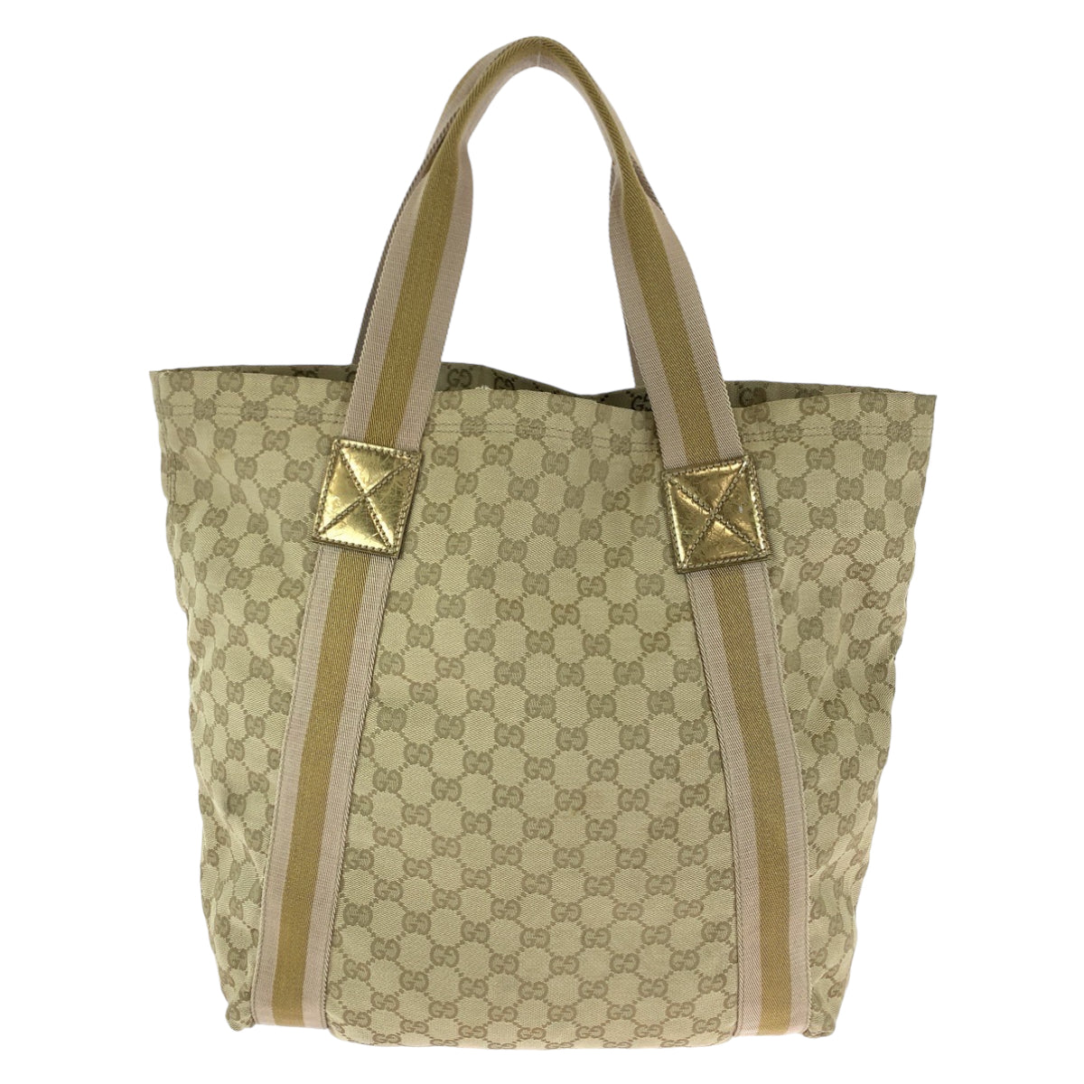 GUCCI Tote Bag 189669 GG canvas Beige gold Tote Bag Shoulder Bag Sherry line Women Used Authentic