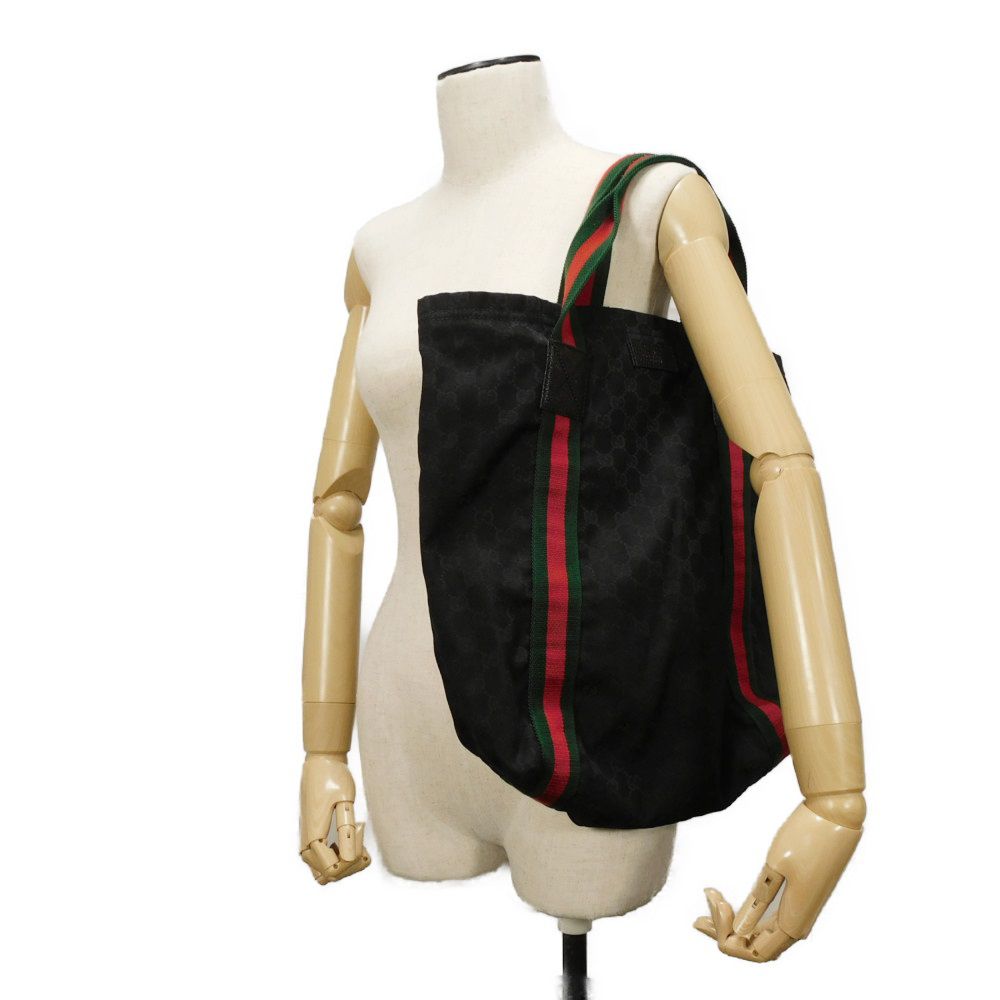 GUCCI Tote Bag 189669 GG canvas x calf leather (embossed) black Logo embossing GG canvas tote