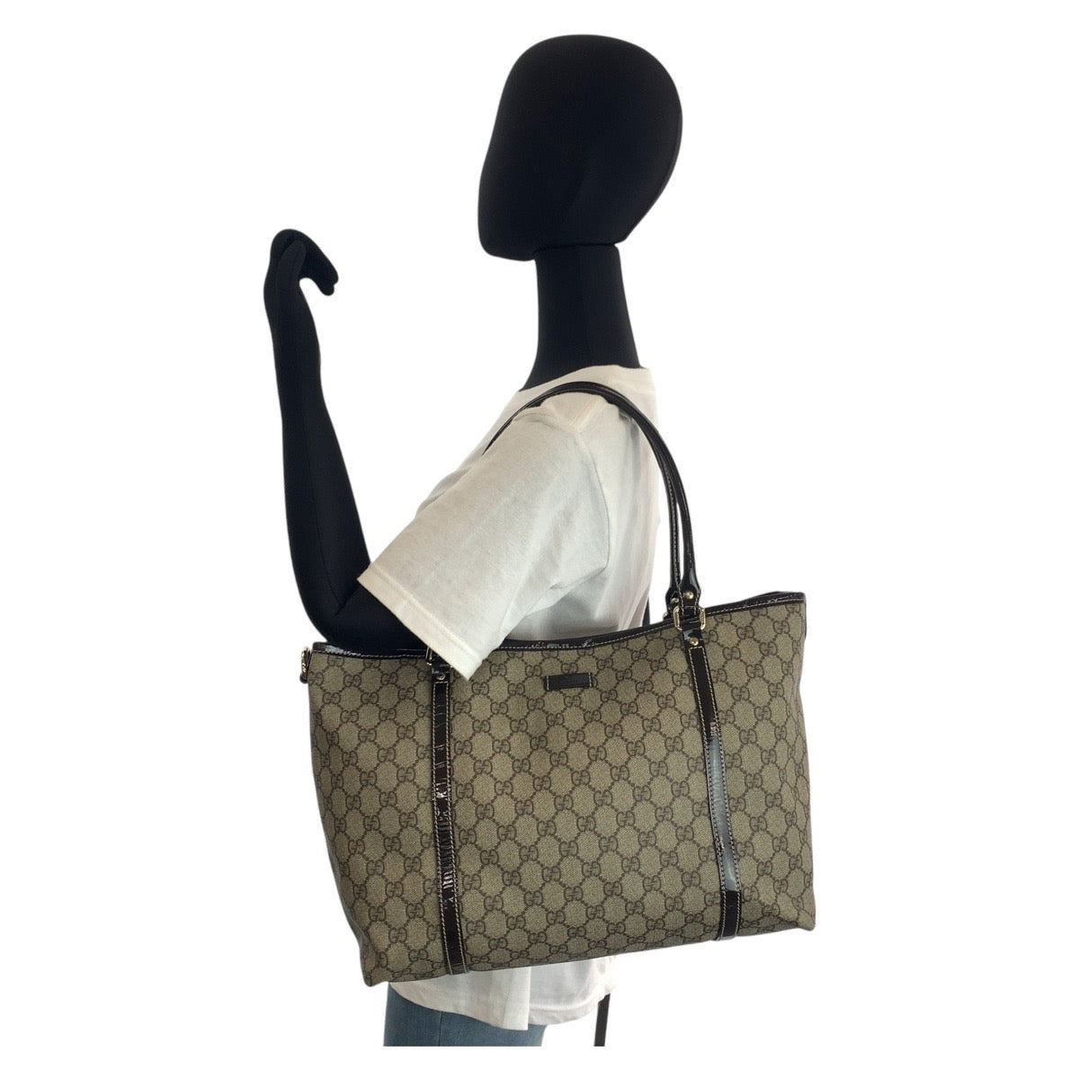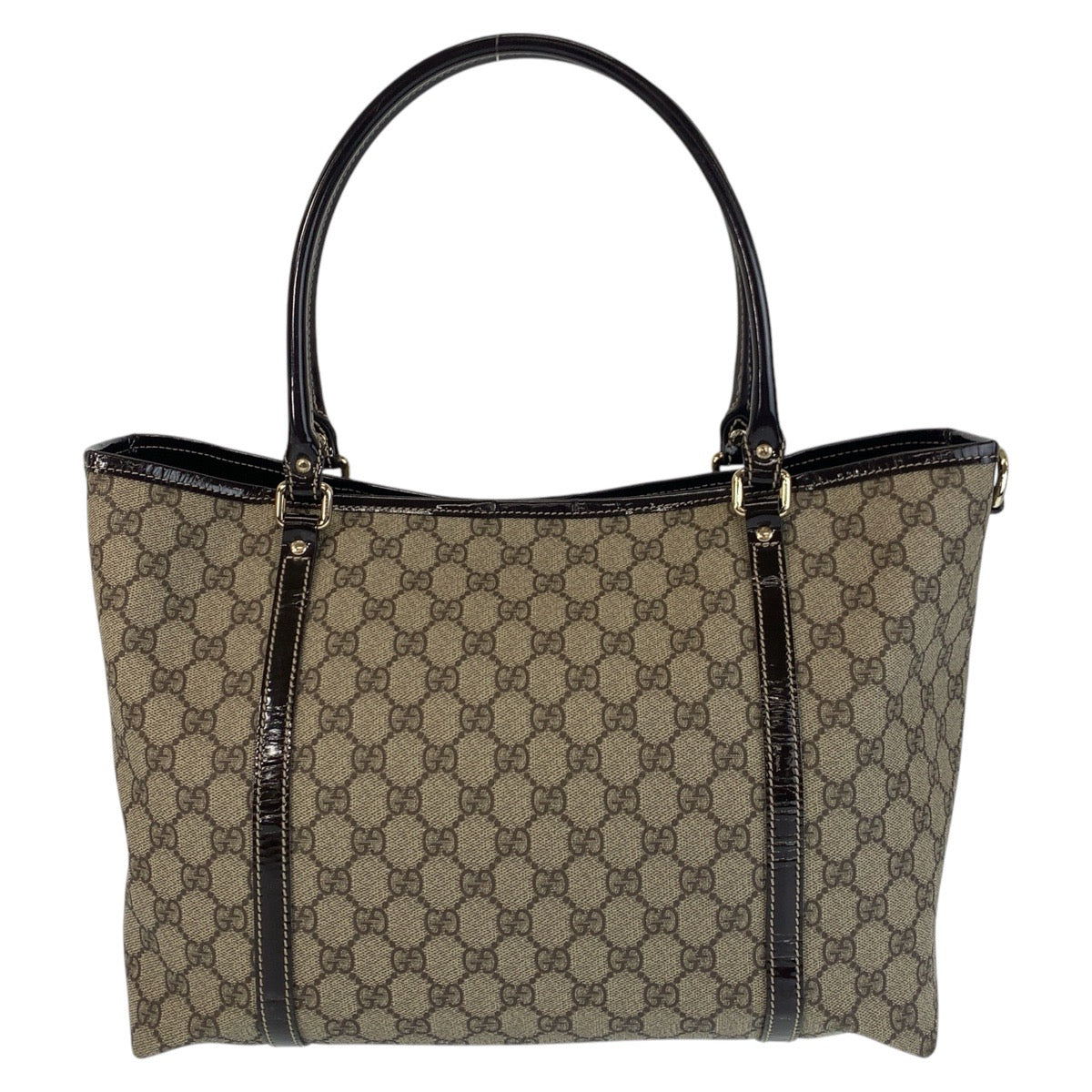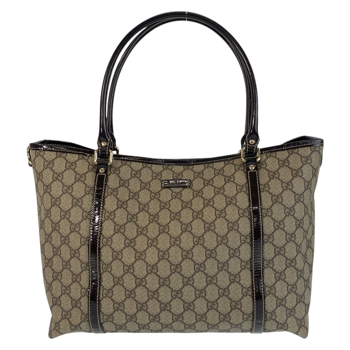 GUCCI Tote Bag 197953 GG Supreme Canvas Beige Brown Gold Metal
