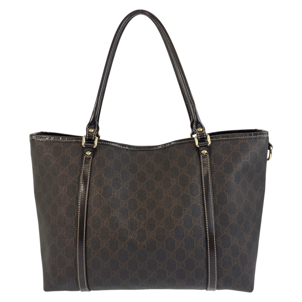 GUCCI Tote Bag 197953 GG Supreme Canvas Brown Gold Metal Tote Bag Shoulder Bag Women Used Authentic