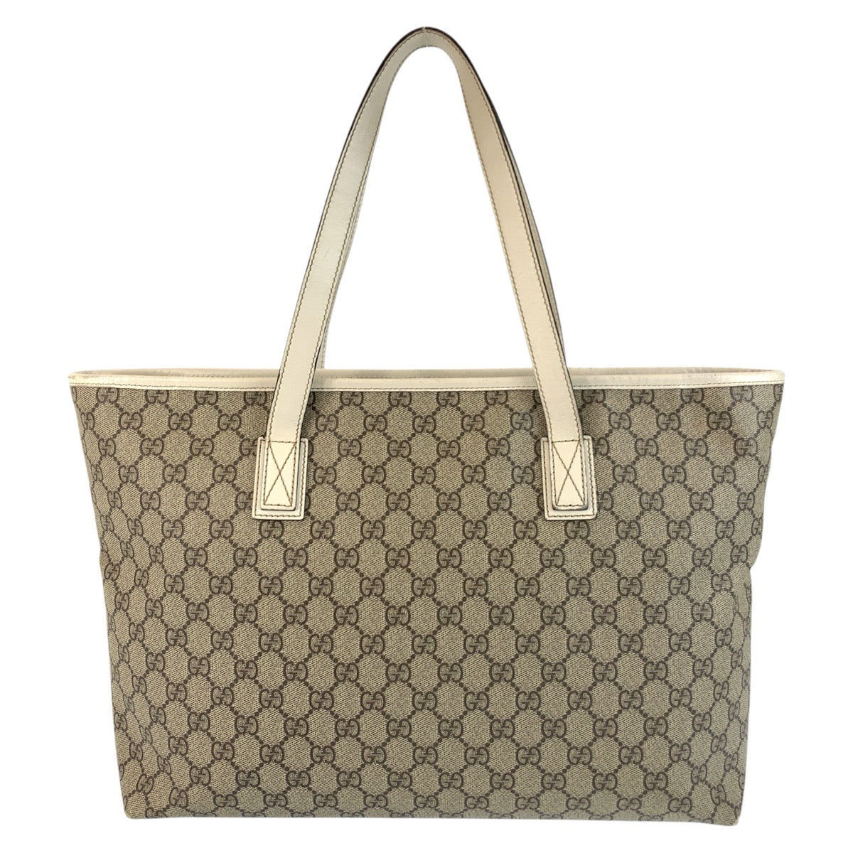 GUCCI Tote Bag 211137 GG Supreme canvas, leather Beige Ivory Tote Bag Shoulder Bag Women Used Authentic