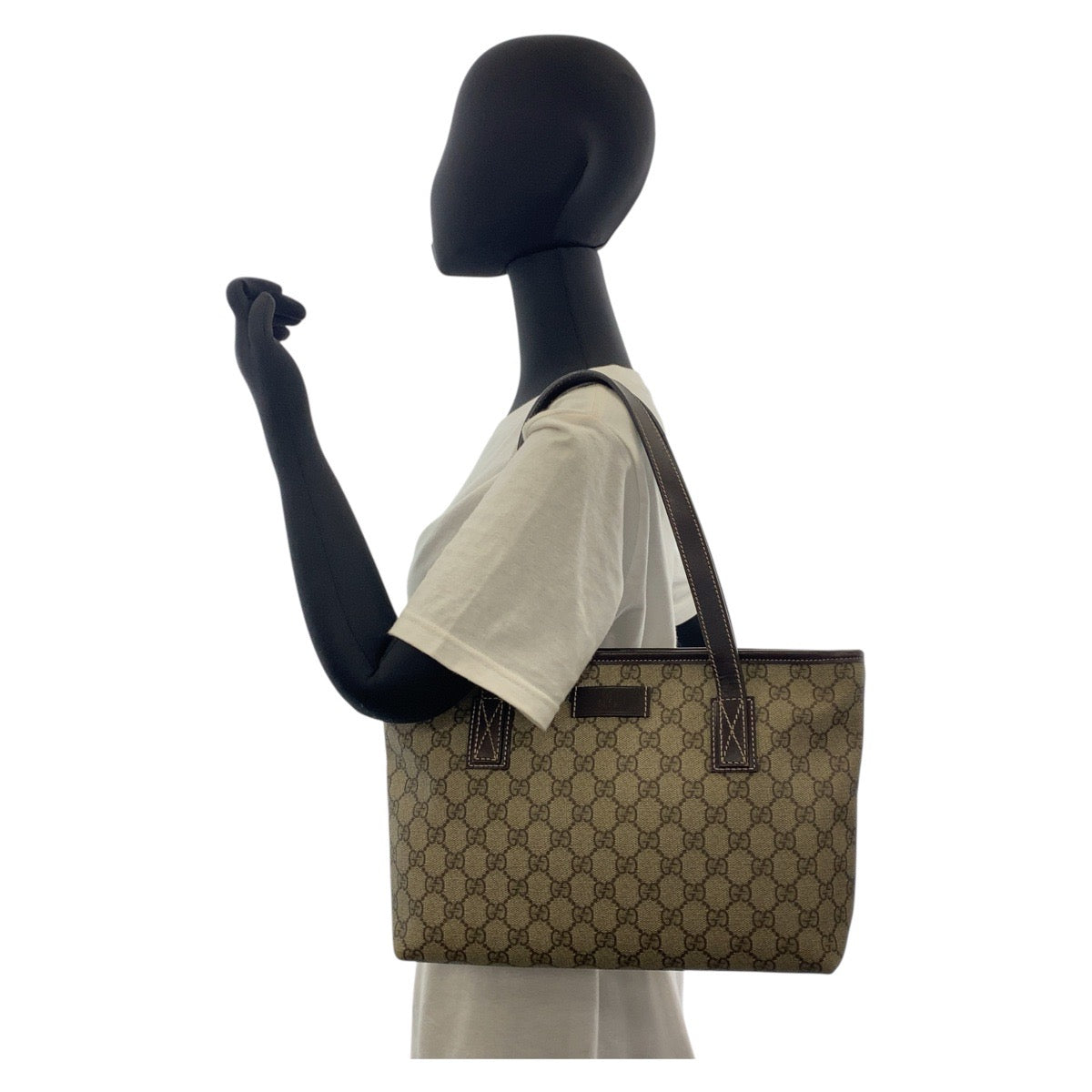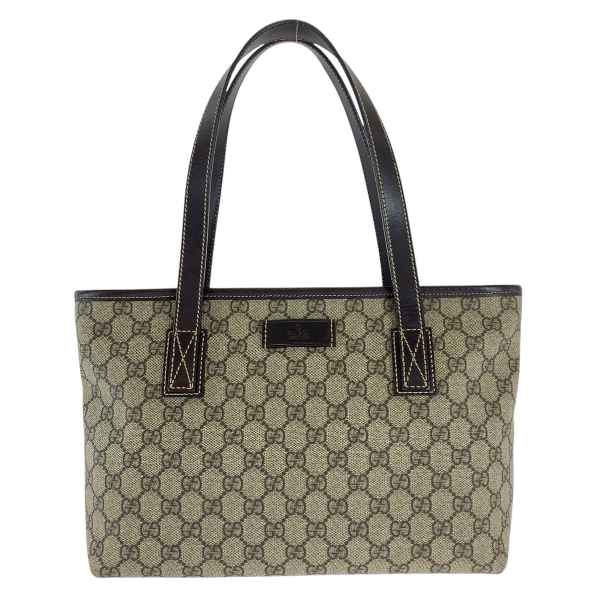 GUCCI Tote Bag 211138 GG Supreme canvas, leather beige Tote Bag Shoulder Bag Women Used Authentic