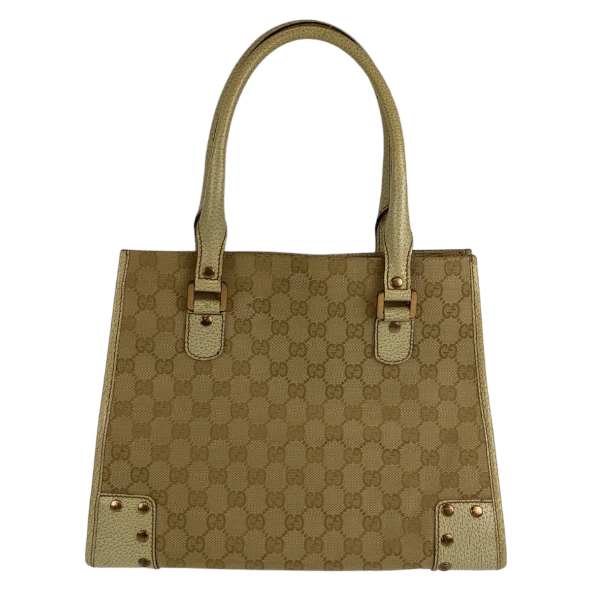 GUCCI Tote Bag 214397 Canvas, Leather Beige Ivory Gold Metal Tote Bag Shoulder Bag GG canvas Women Used Authentic
