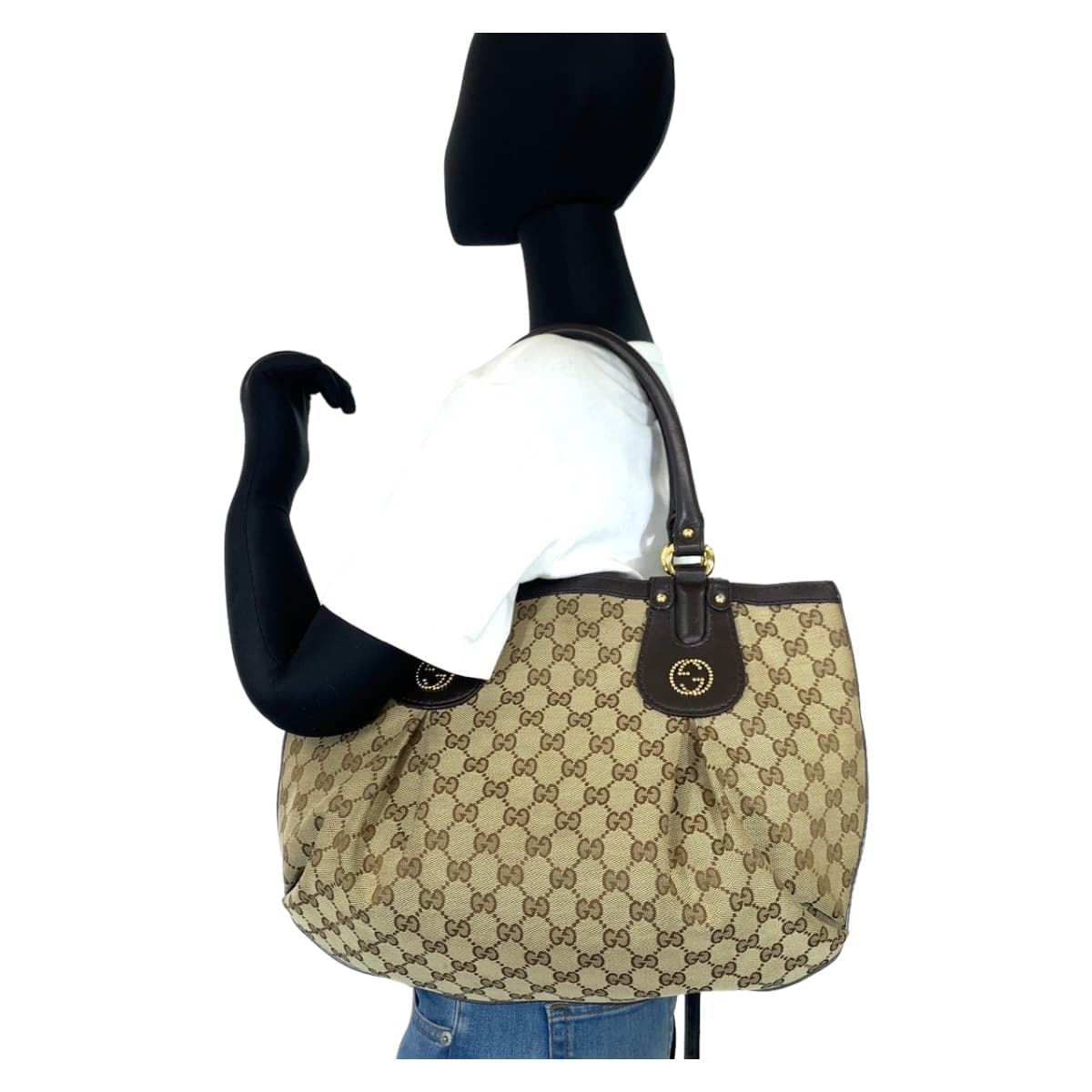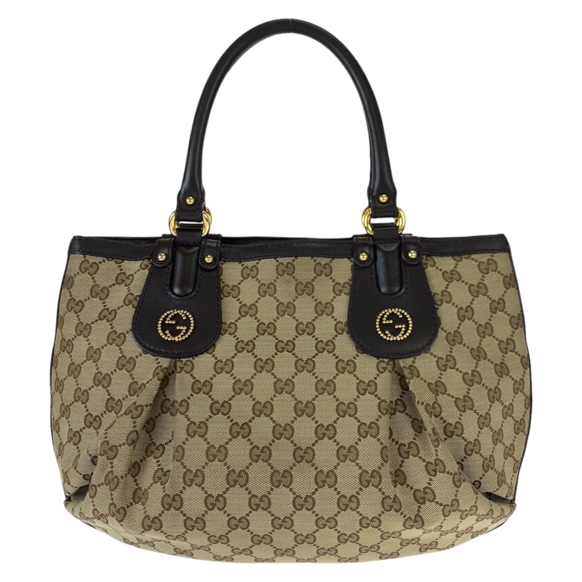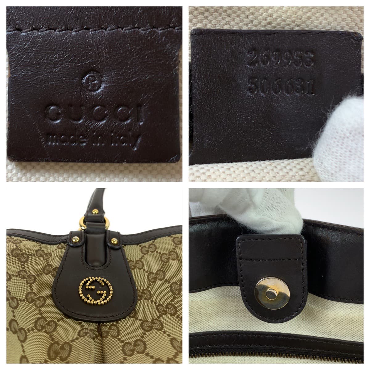 GUCCI Tote Bag 269953 GG canvas, leather Beige brown Tote Bag Shoulder Bag Women Used Authentic
