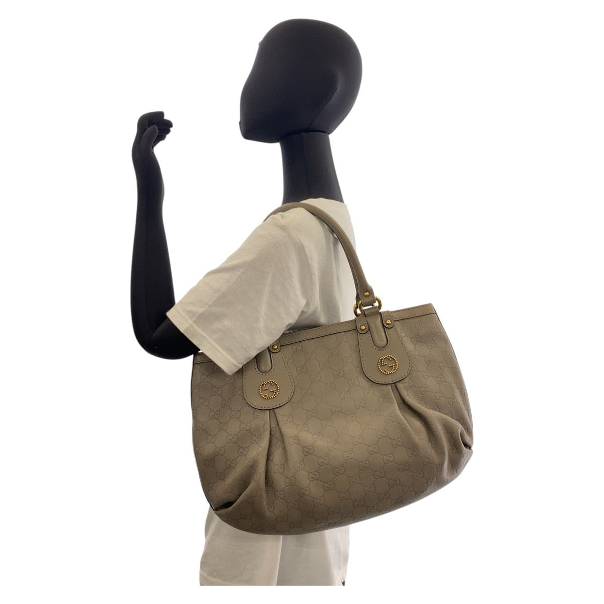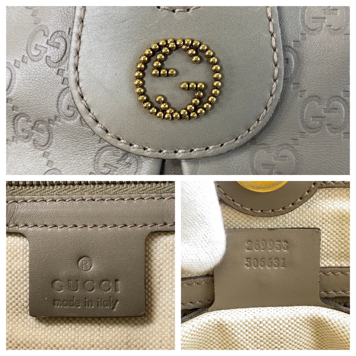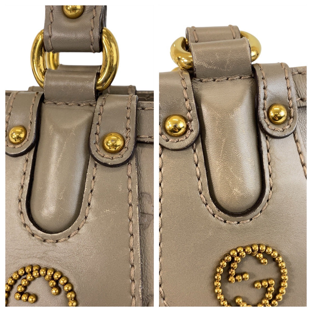 GUCCI Tote Bag 269953 leather Greige Gold Metal Tote Bag Shoulder Bag Scarlet Guccissima Women Used Authentic