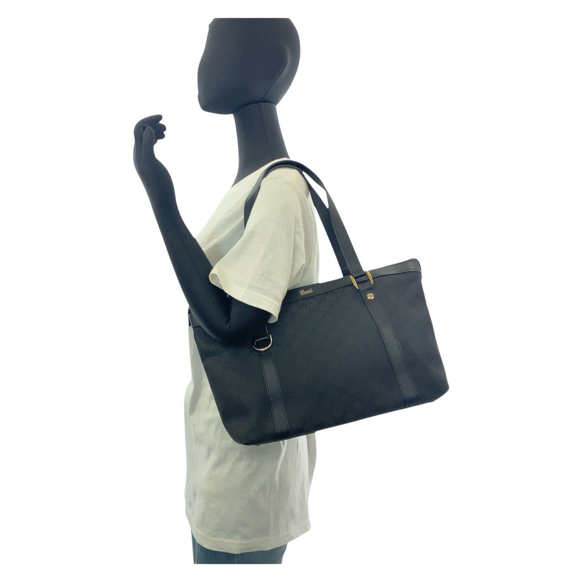 GUCCI Tote Bag 272399 GG canvas, leather Black GoldMetal Tote Bag Shoulder Bag Women Used Authentic