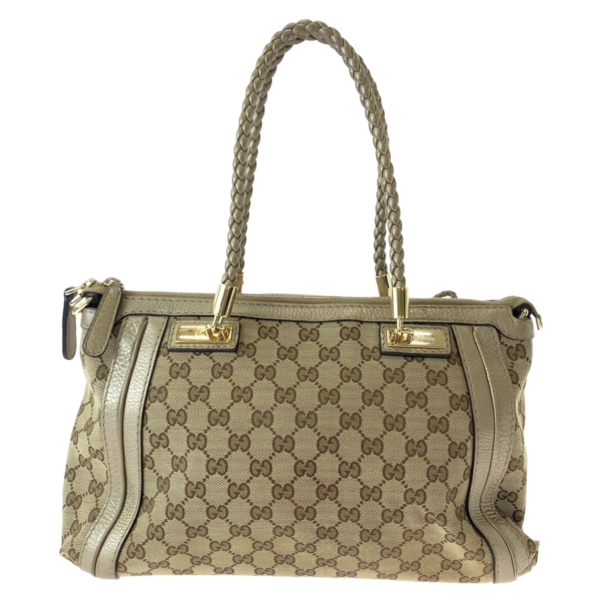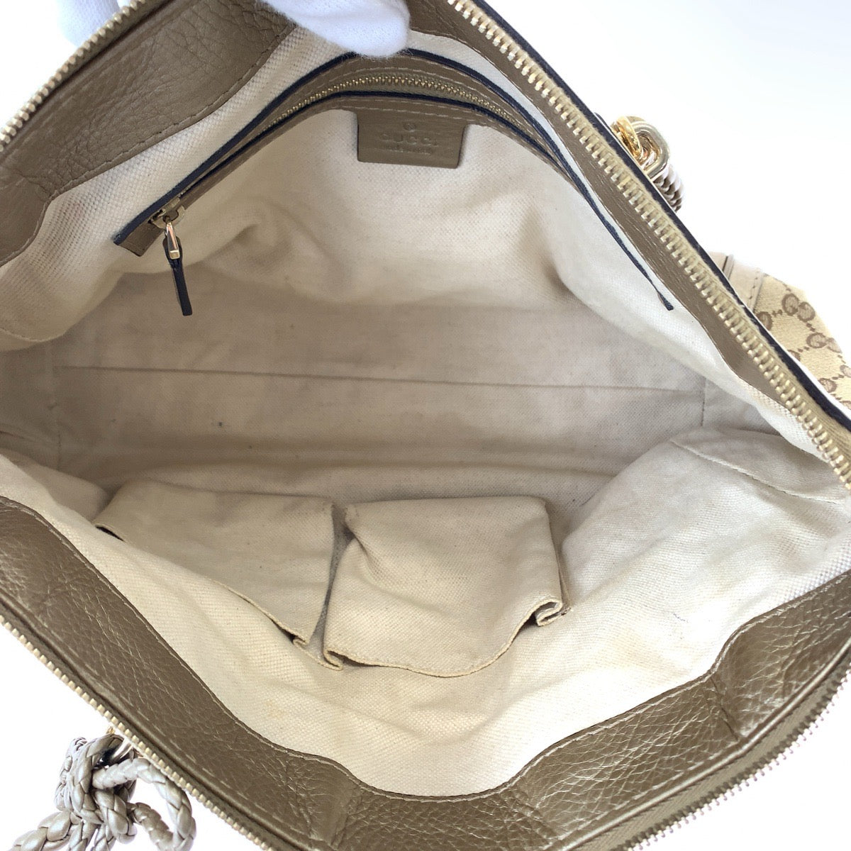 GUCCI Tote Bag 282300 GG canvas Brown Gold Metal Bella Bamboo Ribbon tassel