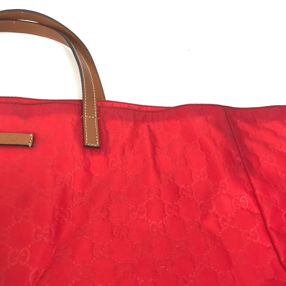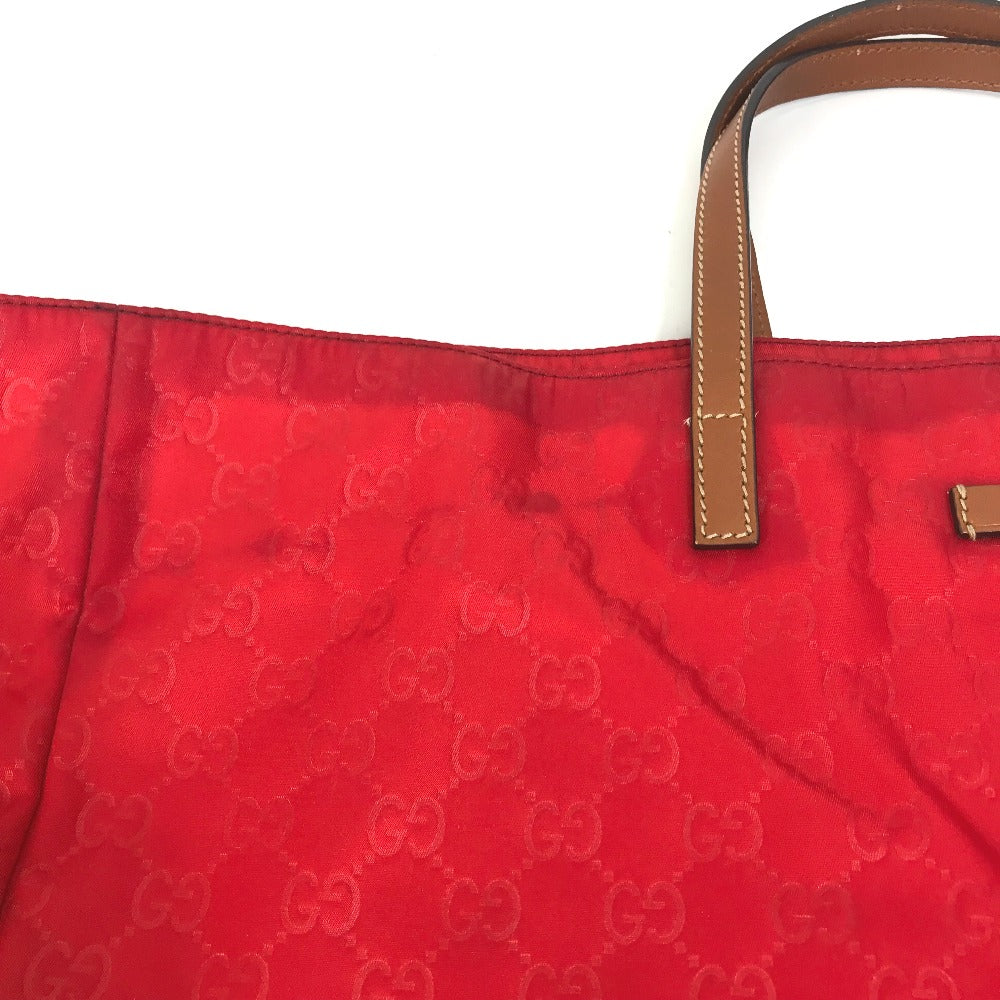 GUCCI Tote Bag 286198 Nylon Red GG pattern Large tote Women Used Authentic