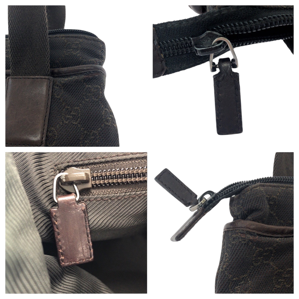 GUCCI Tote Bag 28893 GG canvas Brown Silver Metal Tote Bag handbag Women Used Authentic