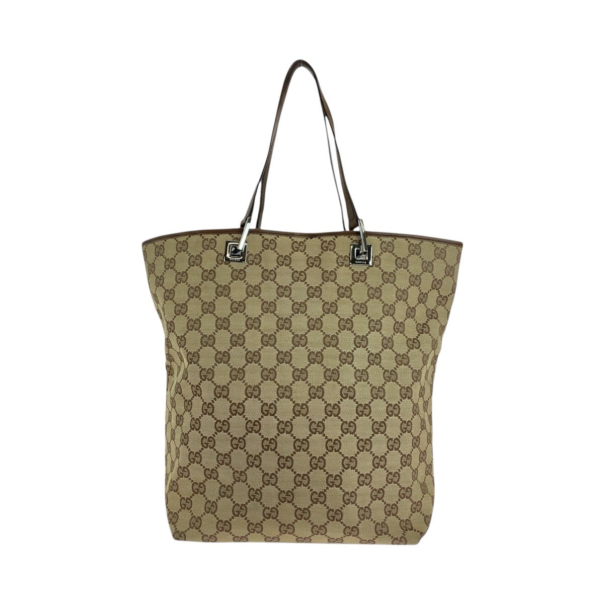 GUCCI Tote Bag 31243 GG canvas, leather Beige brown Tote Bag Shoulder Bag Women Used Authentic