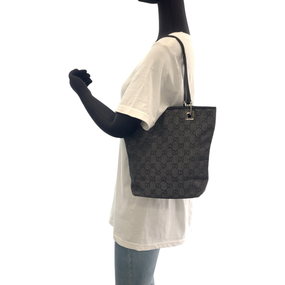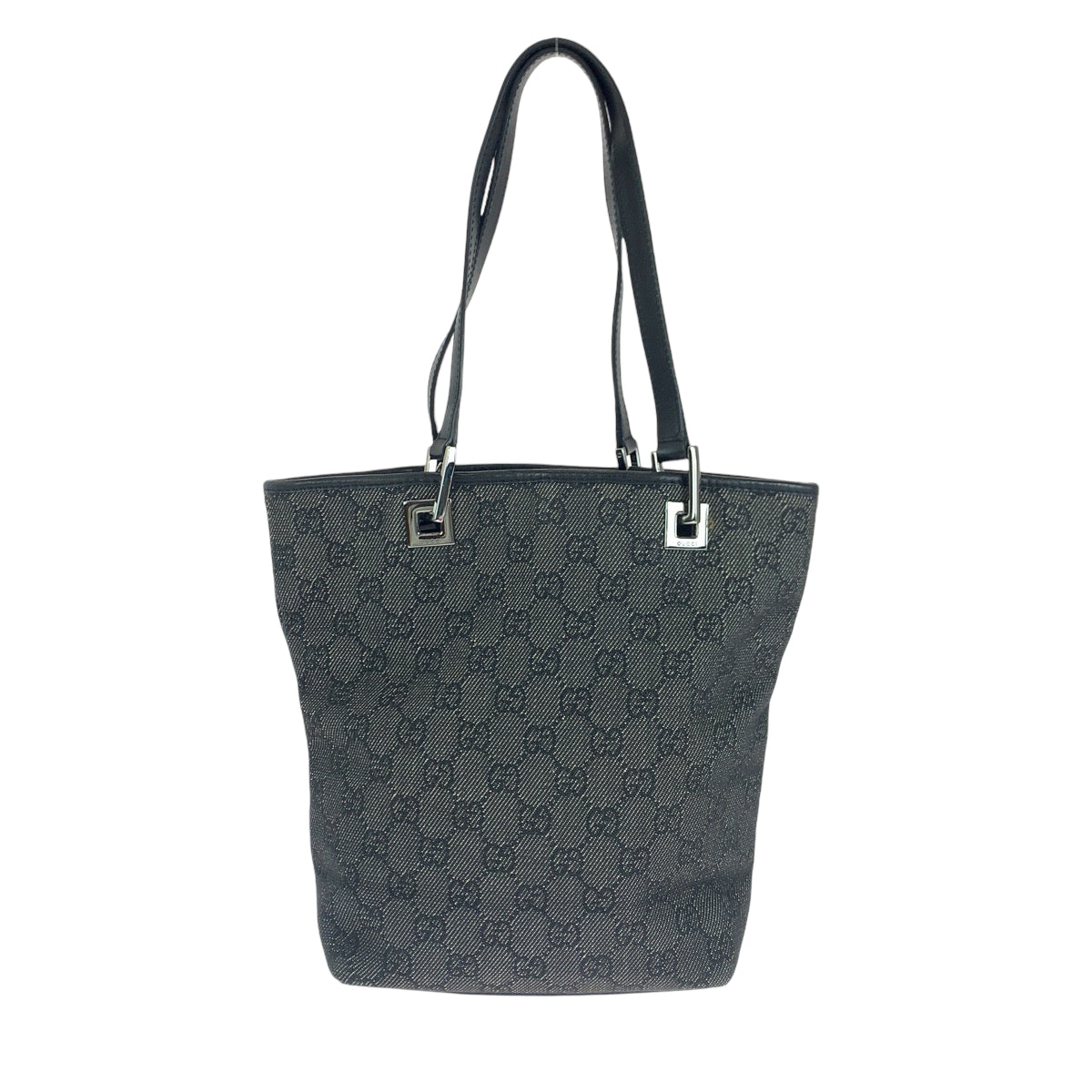 GUCCI Tote Bag 31244 GG canvas Black SilverMetal Tote Bag handbag Women Used Authentic