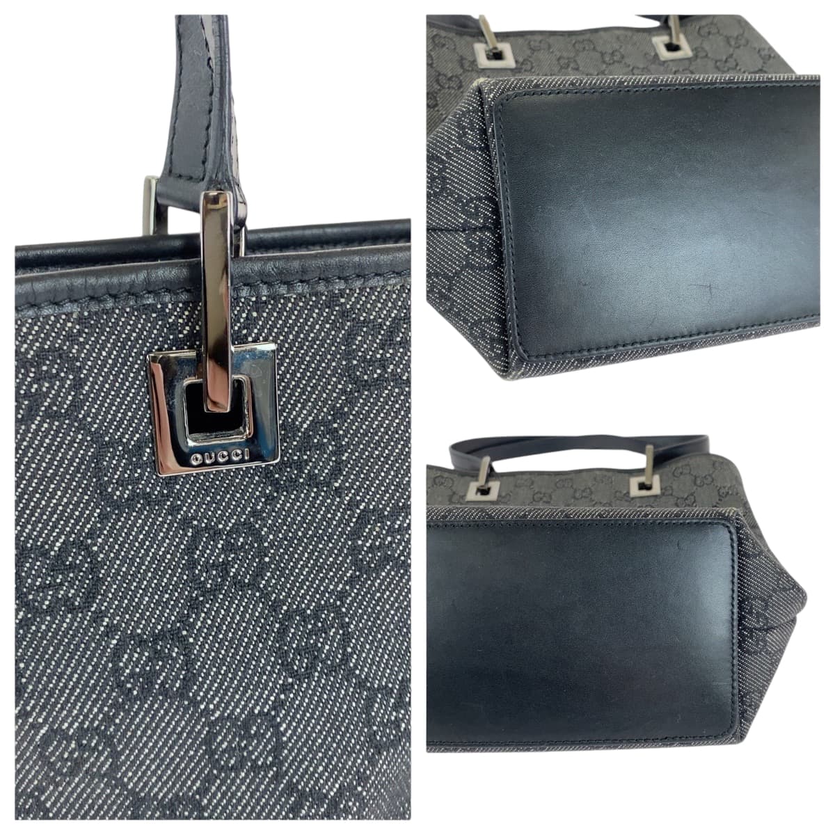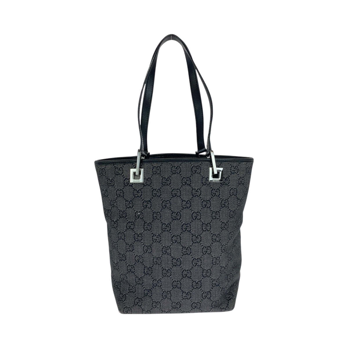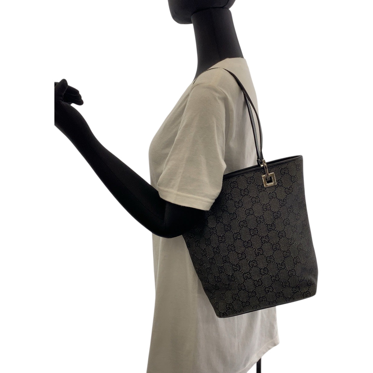 GUCCI Tote Bag 31244 GG canvas Black SilverMetal Tote Bag Shoulder Bag Women Used Authentic