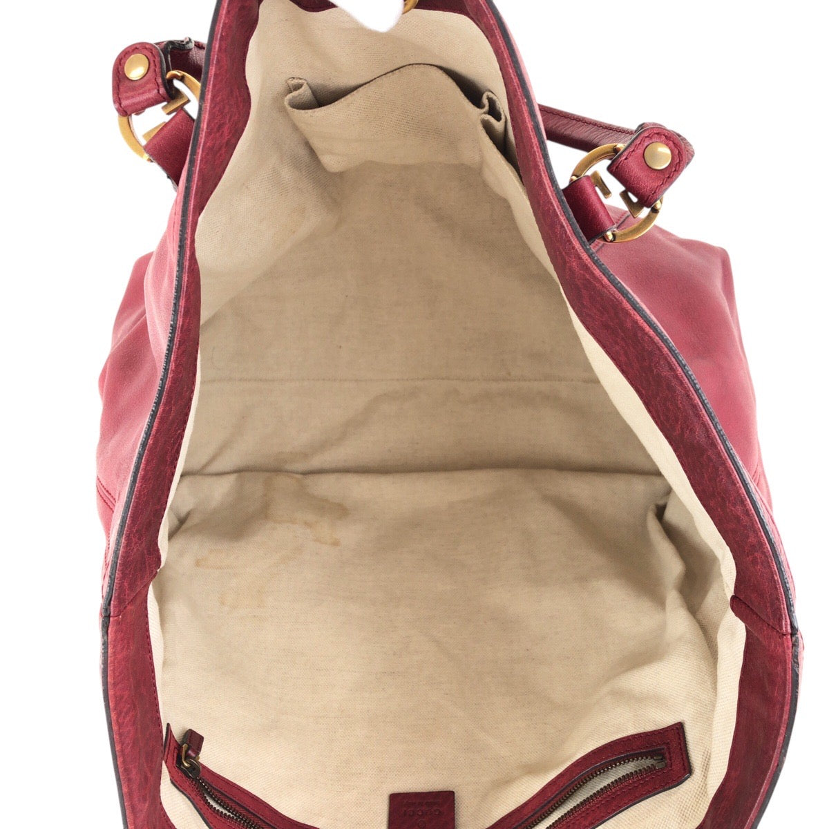 GUCCI Tote Bag 336756 leather Red Gold Metal Tote Bag Shoulder Bag Interlocking Women Used Authentic