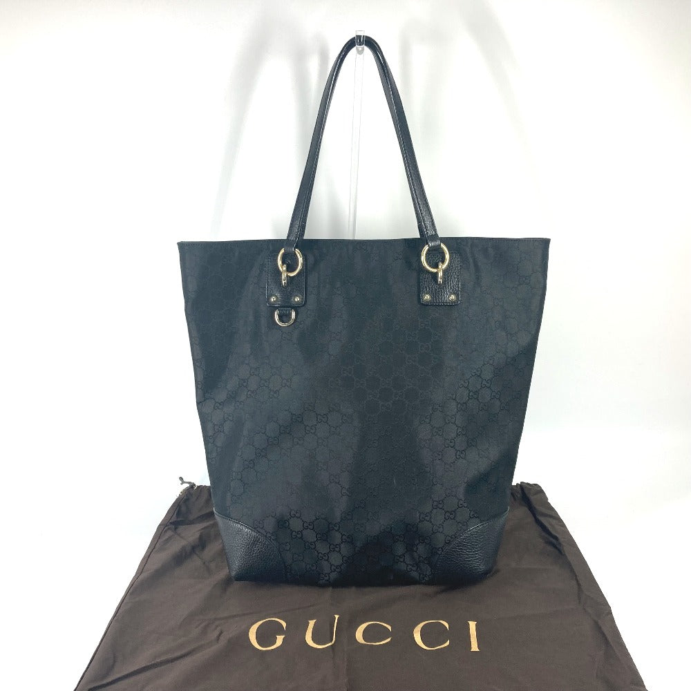GUCCI Tote Bag 353702 Nylon / leather black GG Women Used Authentic
