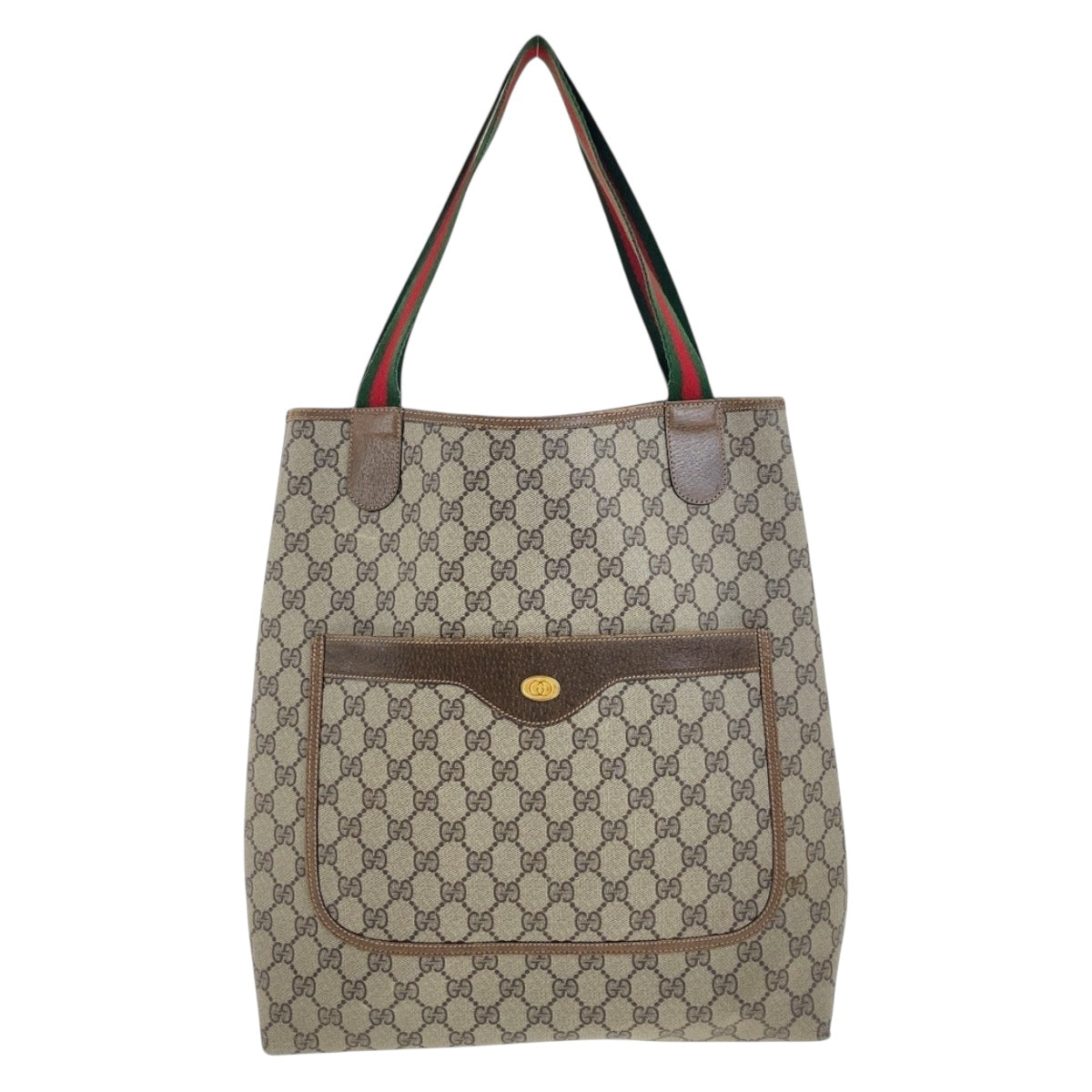 GUCCI Tote Bag 378 02 003 GG Supreme Canvas Beige Multicolor Gold Metal Old Gucci Shelly Line