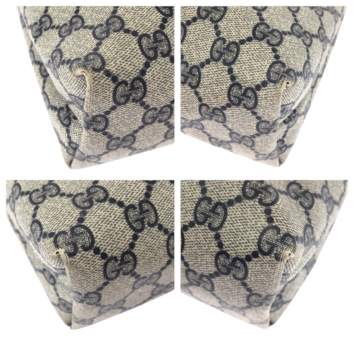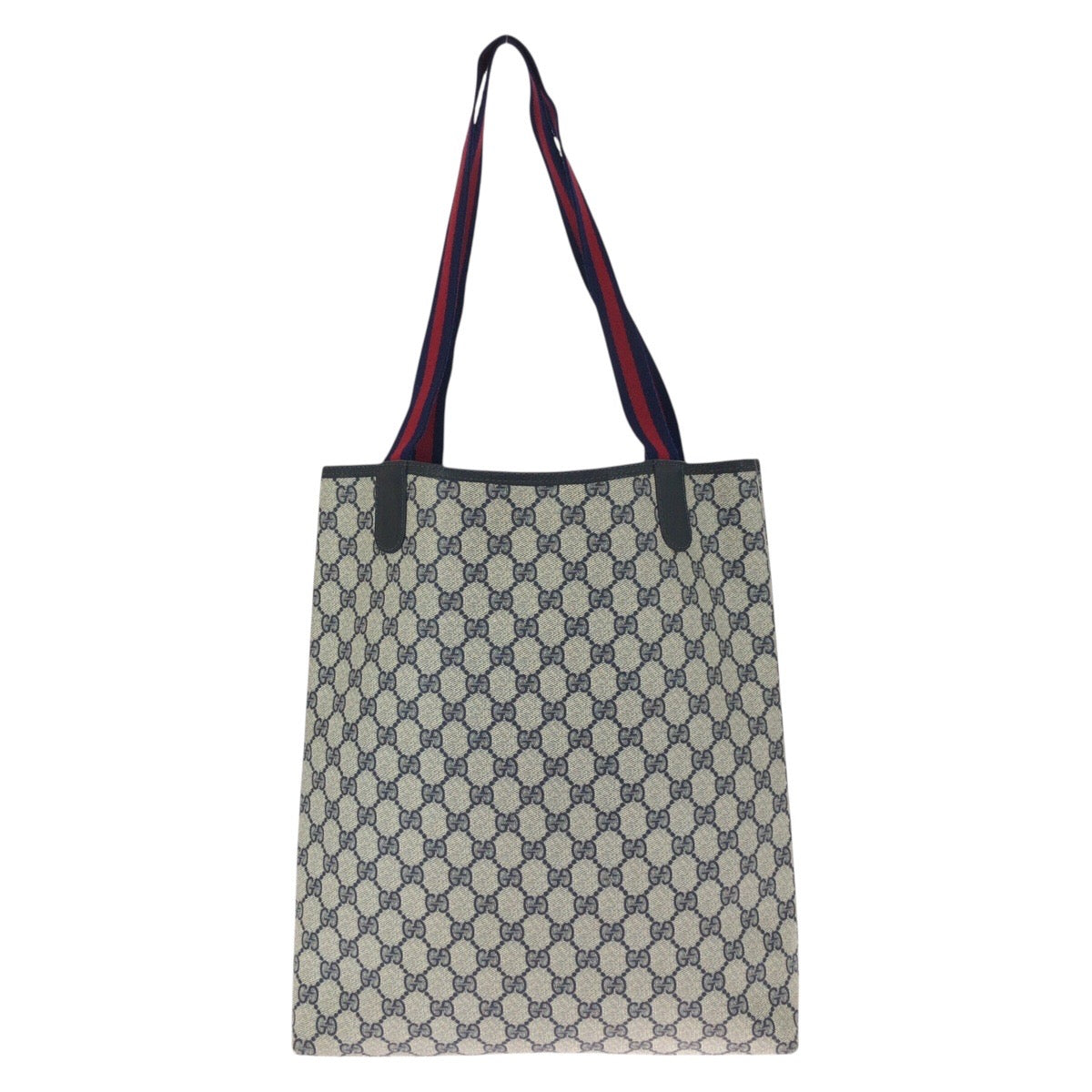 GUCCI Tote Bag 39 002 4487 GG Supreme Canvas Navy Gray Gold Metal Old Gucci Shelly Line