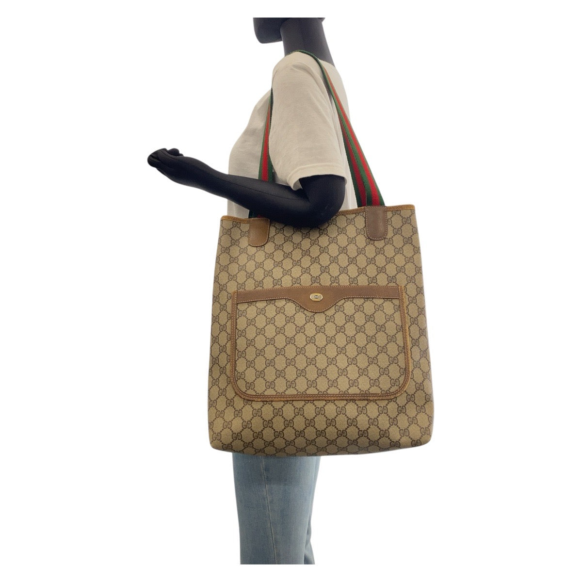 GUCCI Tote Bag 39 02 003 GG Supreme Canvas Brown Old Gucci Shelly Line Interlocking