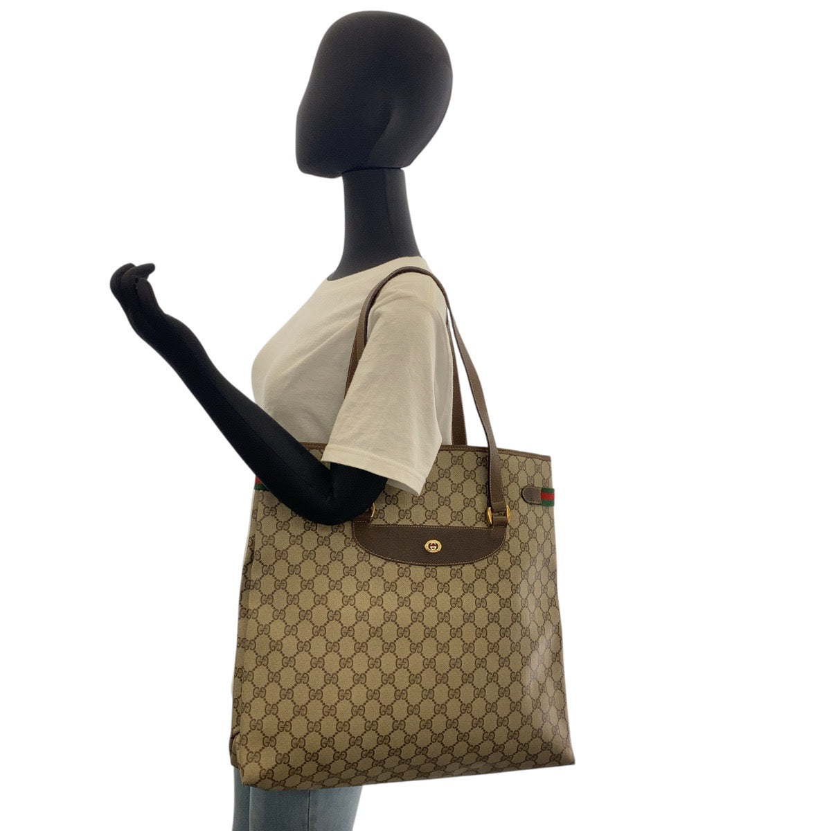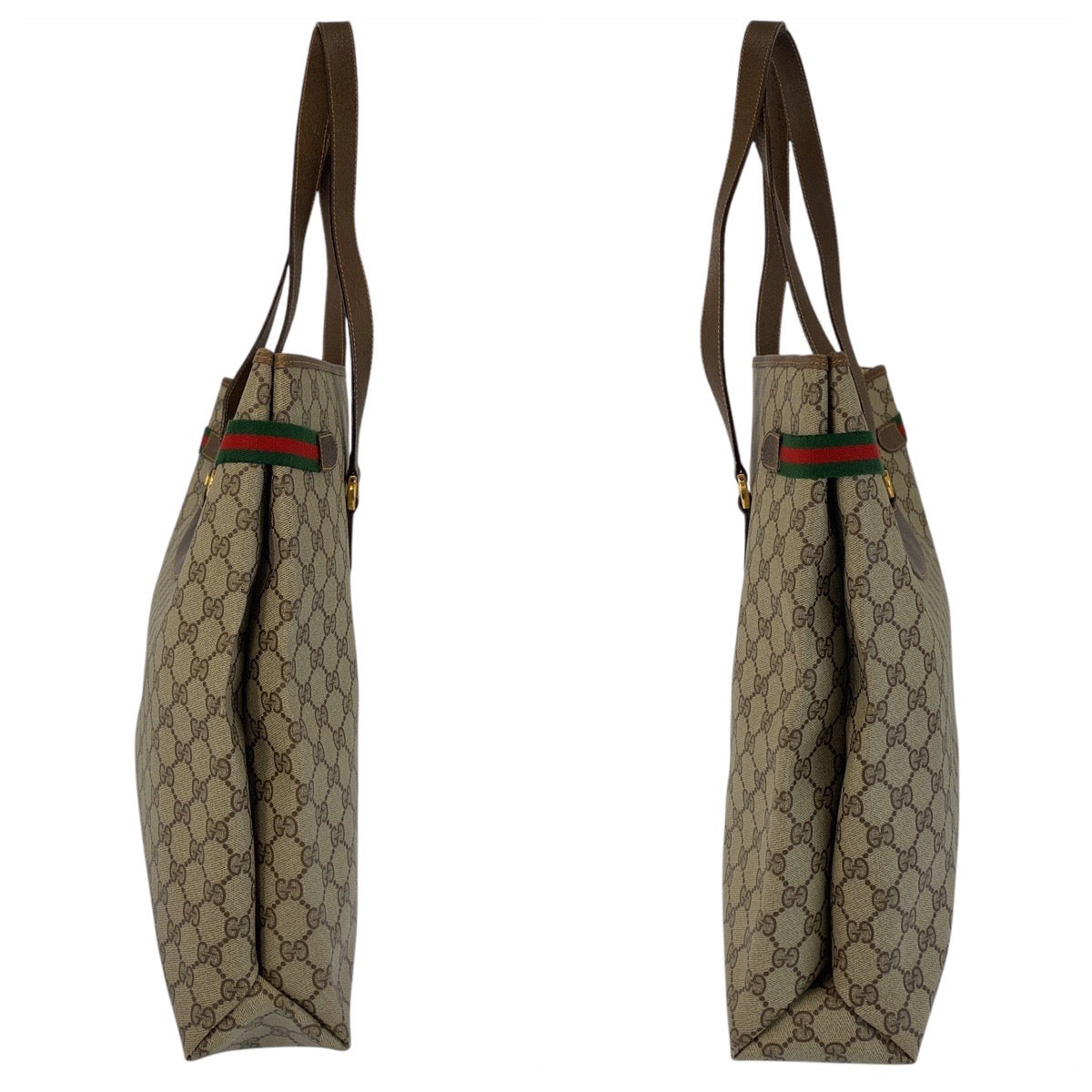 GUCCI Tote Bag 39 02 091 GG Supreme canvas, leather Beige Brown Gold Metal Tote Bag Shoulder Bag Sherry Line Old Gucci Women Used Authentic