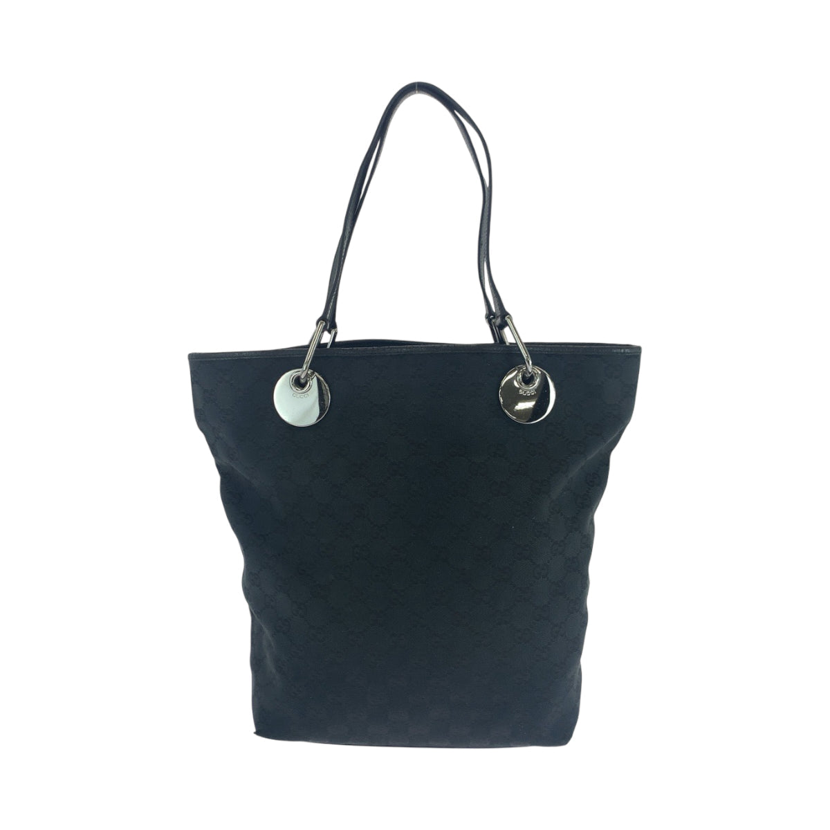 GUCCI Tote Bag 420836 GG canvas Black SilverMetal Tote Bag Shoulder Bag Women Used Authentic