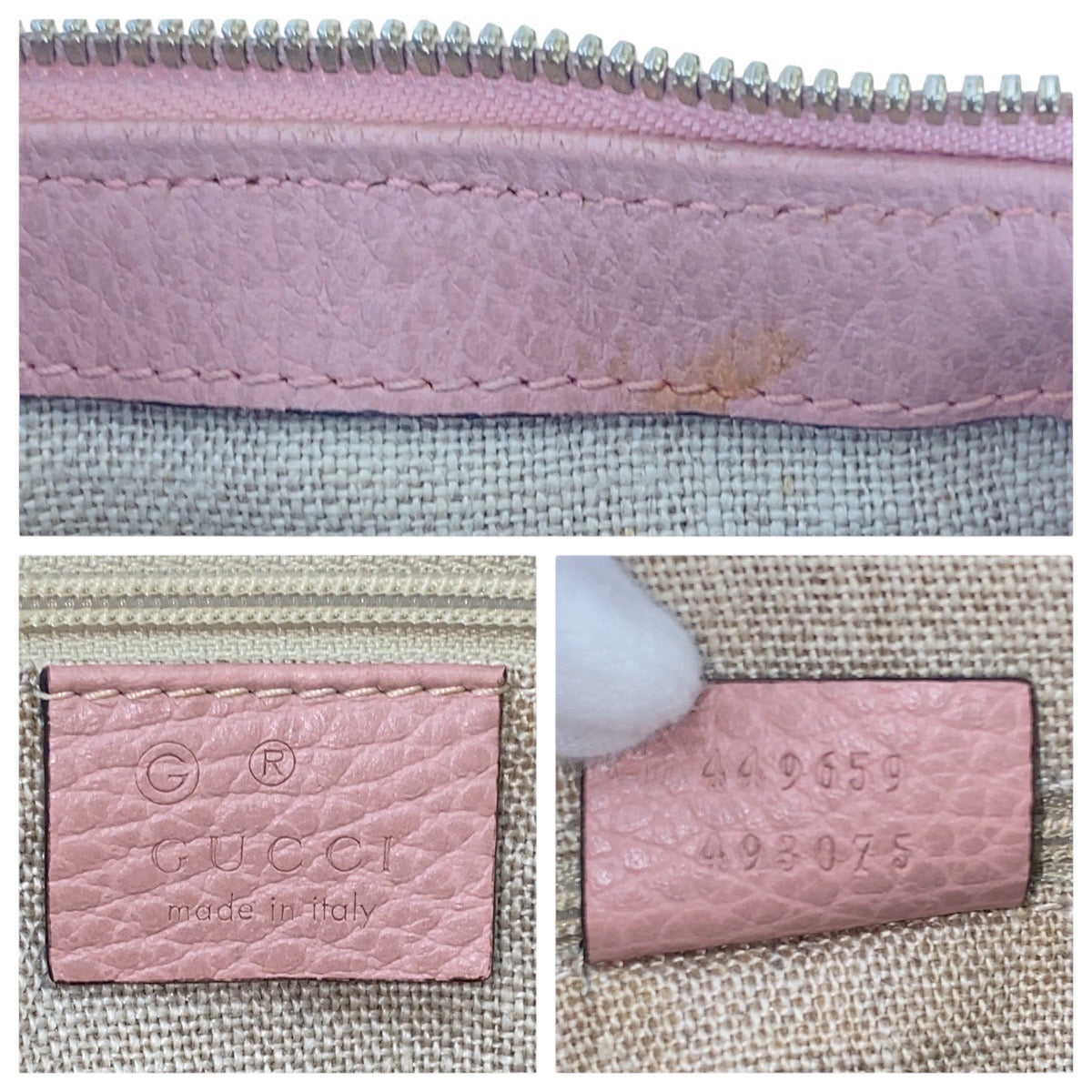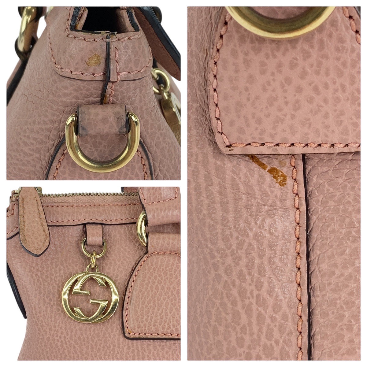 GUCCI Tote Bag 449659 leather Pink Gold Metal Tote Bag Shoulder Bag 2way GG Marmont Women Used Authentic
